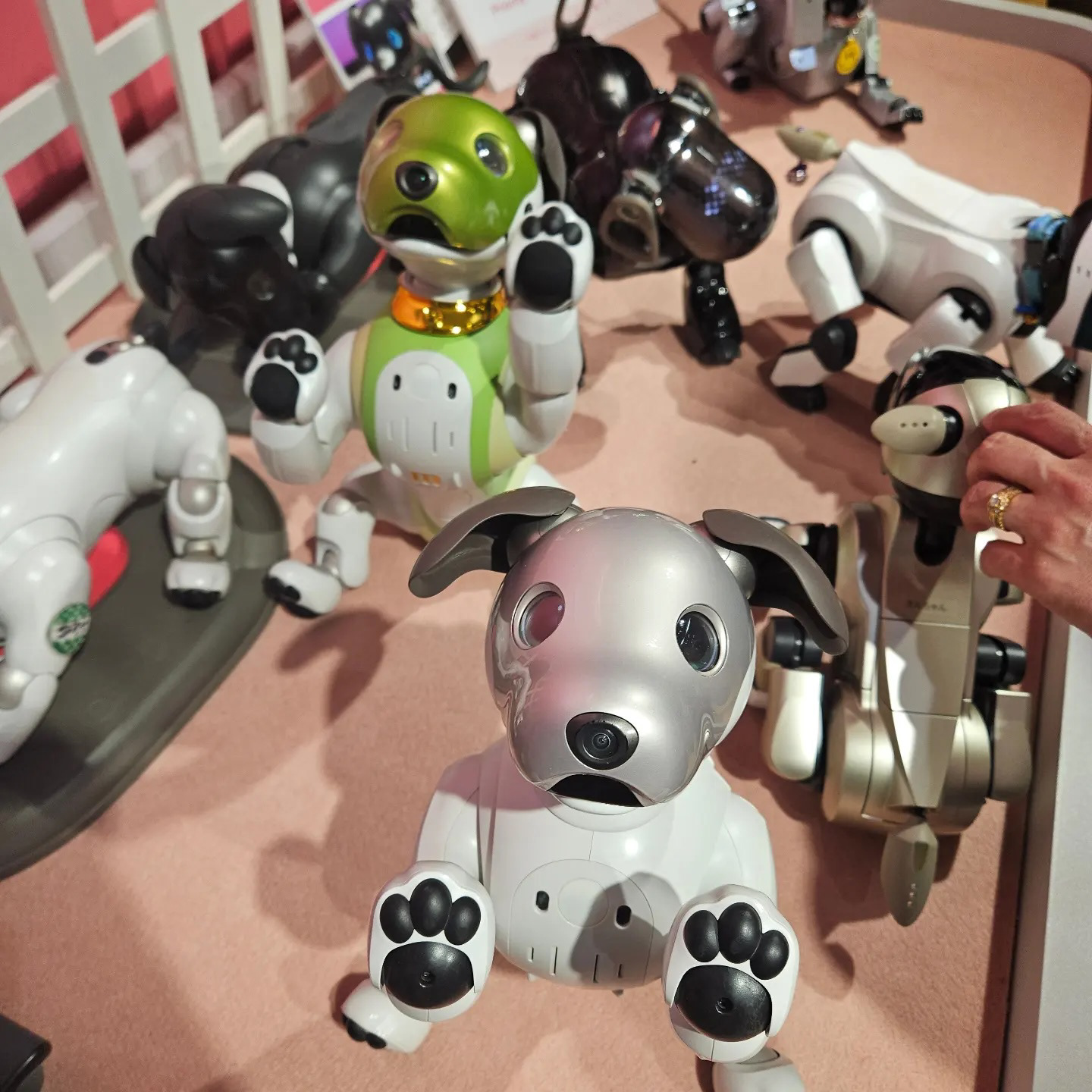 There was also a small miniature aibo figure area and a book for people to leave messages and stick their business cards in.
