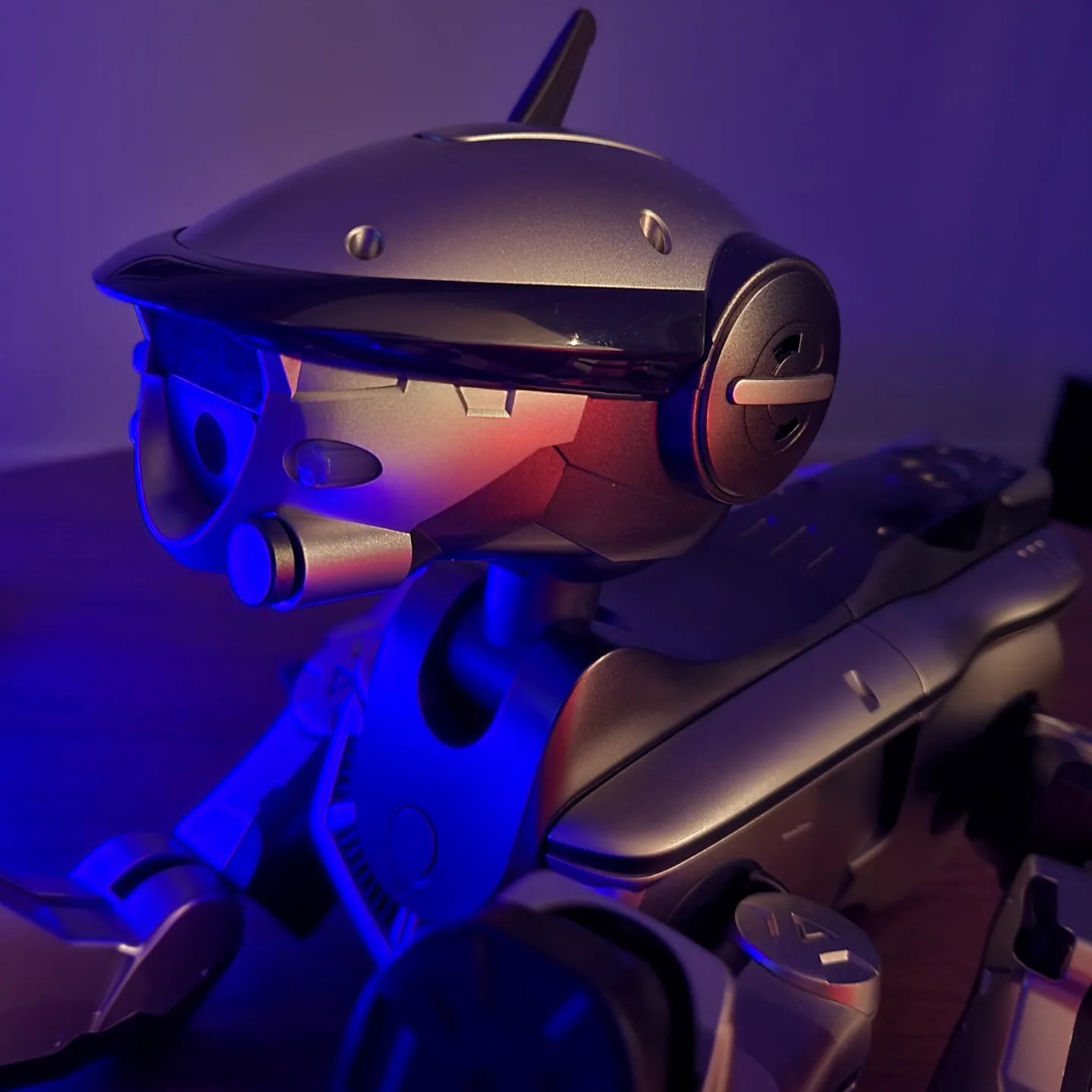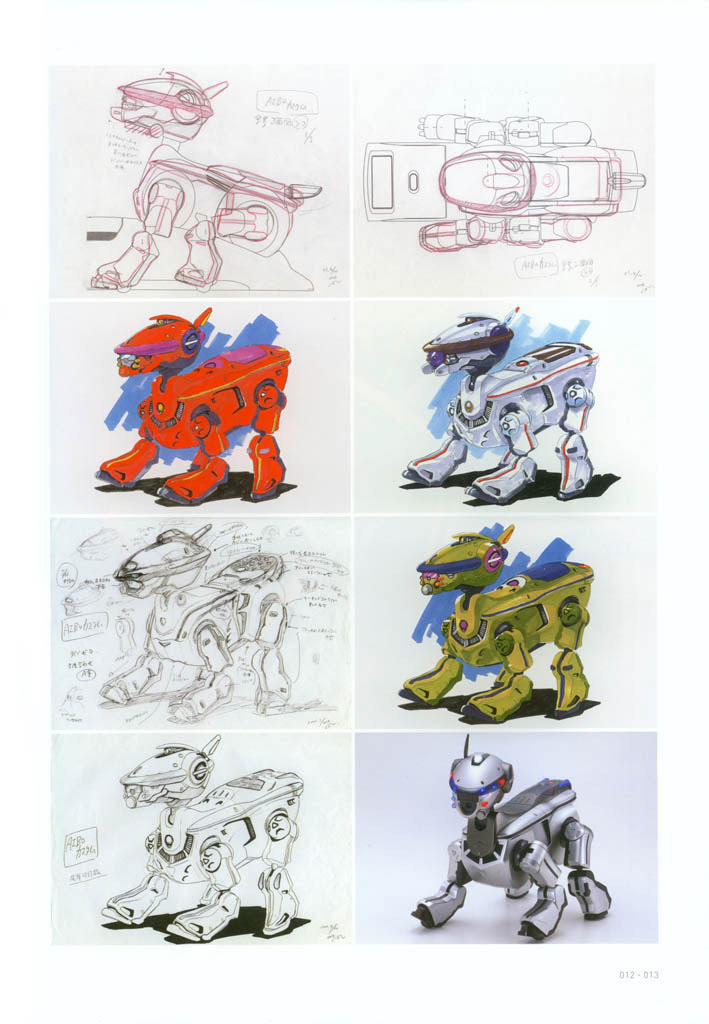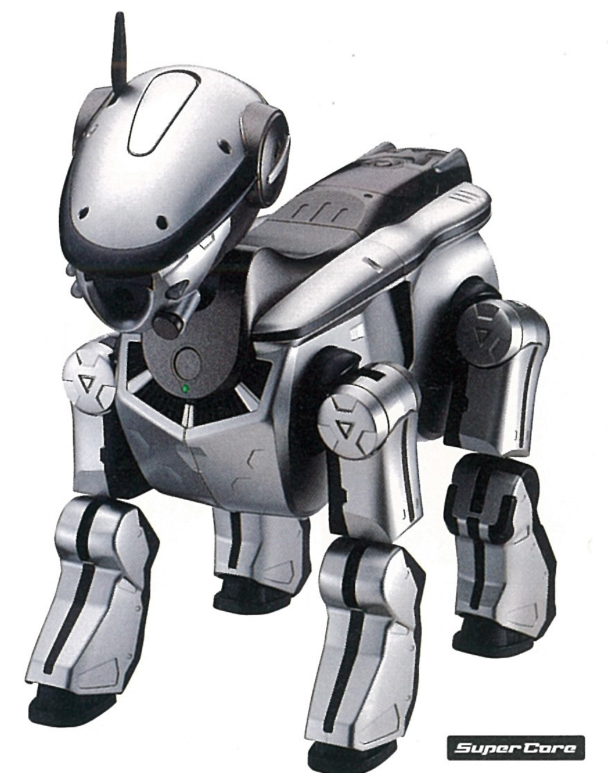 It was designed by Shōji Kawamori (famous for his mecha design work on Macross). Earlier designs for the ERS-220 reveal that this aibo was originally intended to be a dinosaur that could curl up into an egg shape for charging. But this idea was scrapped and they reverted to making another dog-shaped robot to better fit in with the existing aibo lines.