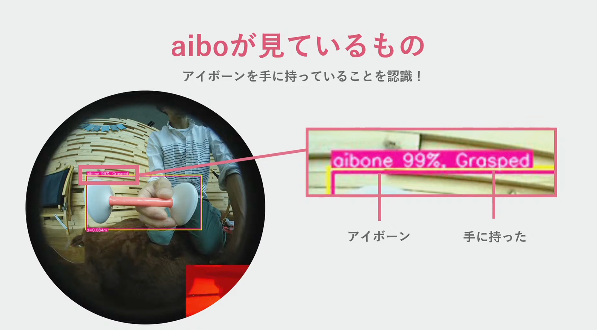 新しいファームウェアでは、aiboが手から骨を受け取って投げたり、顎の下に置いたりといった様々な技を披露できるようになりました。