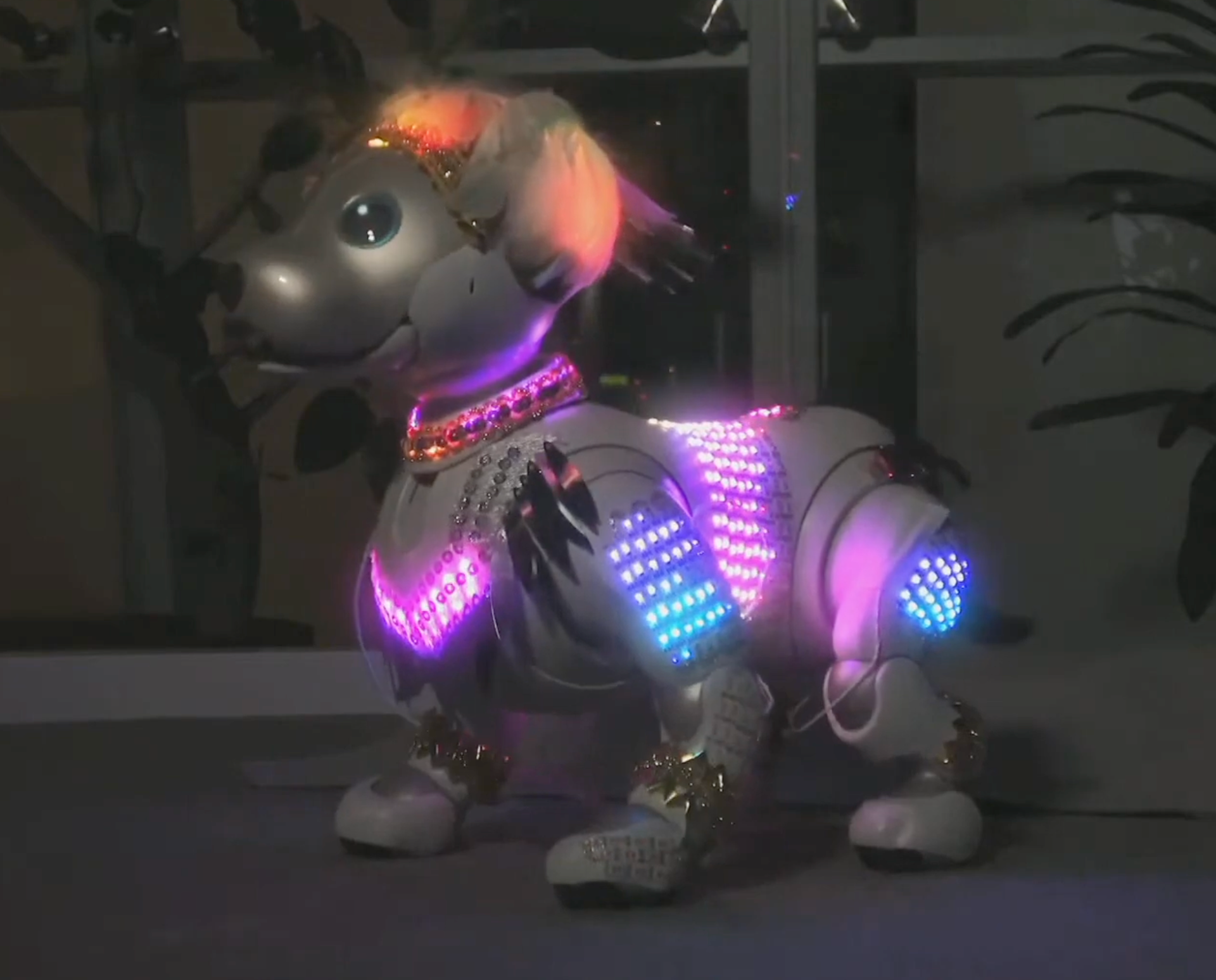 Samba de Janeiro premium plan dance was showcased complete with LED outfit wearing aibo.