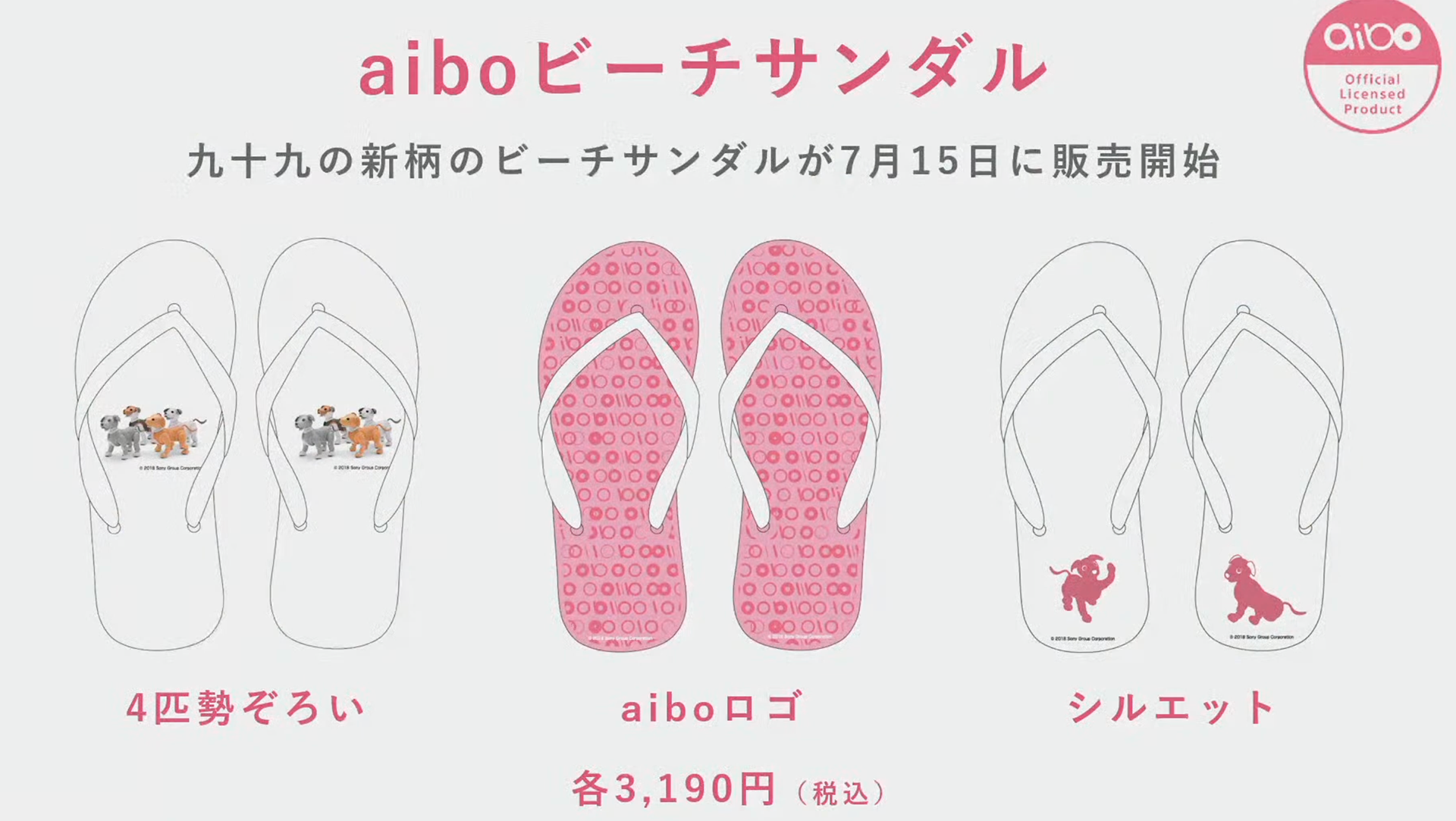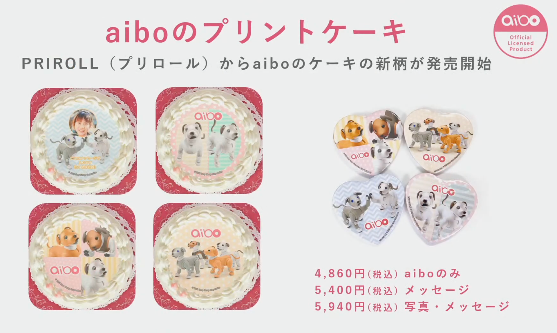 グッズ発表では、グルーヴガレージからホームウェアの新商品、プリロールケーキとマカロンの新商品、ブラビアテレビの「Deco aiboチャンネル」の公開、そして何よりも嬉しいのは、ソニーミュージックストアから耳と尻尾のカラーセットが発表されたことです。カラーはブラック、ホワイト、ピンク、ブルーの4色です。