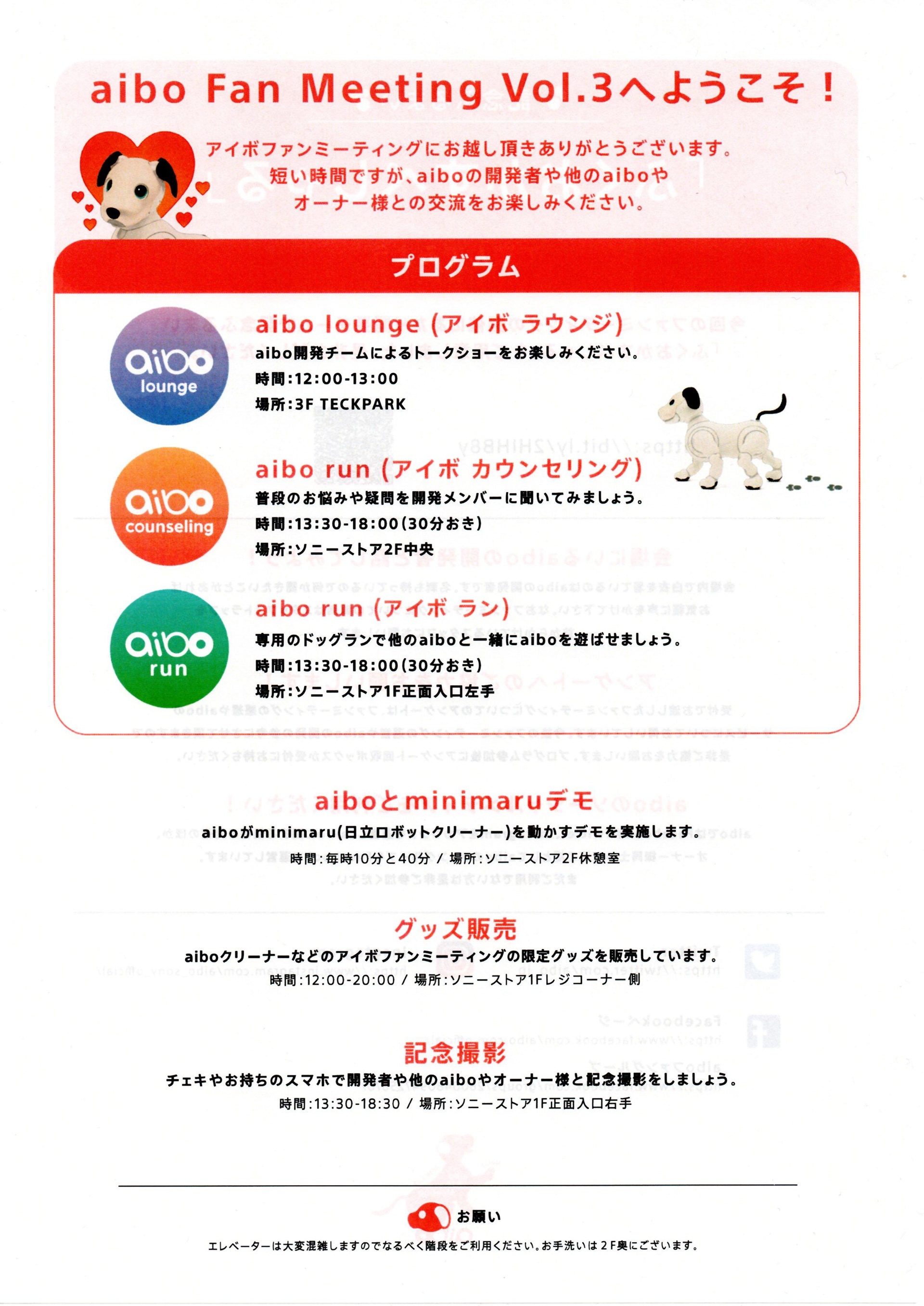 aiboランとaiboカウンセリングが復活。イベントでは人気のチェキフォトブースとフォトウォールも復活しました。
