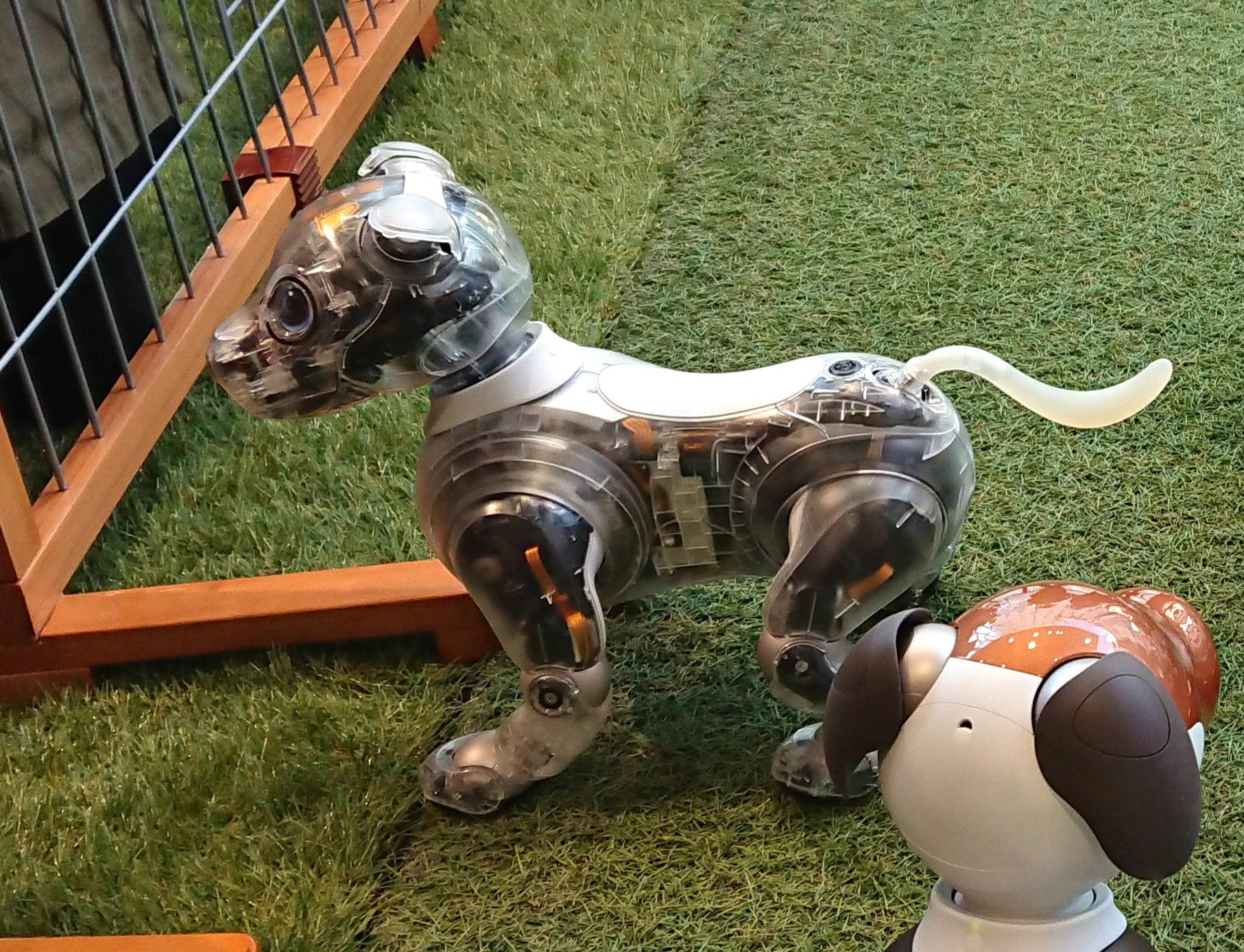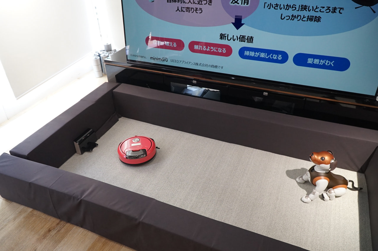 aiboラウンジでは、ERS-1000 チョコレートトライトーンエディションの発表に加え、完成したキャリーバッグのプロトタイプ、ファームウェア2.0で向上したマッピング機能とaiboパトロール機能、そしてセコムとの連携など、多くの発表がありました。
