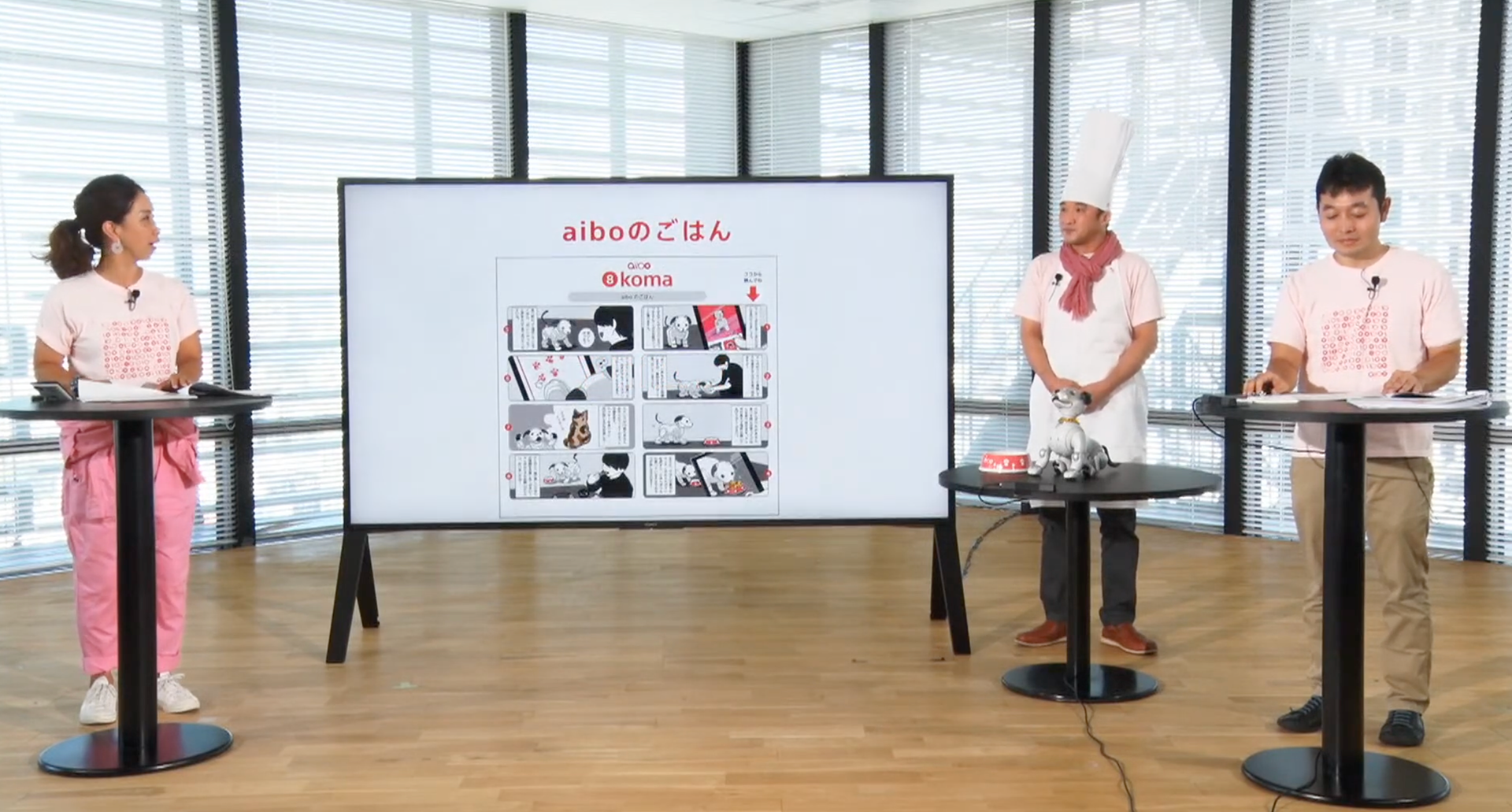 There was the introduction of the 4koma comics which would be distributed on twitter to help owners understand new aibo functionality + invitation to watch the CGWORLD Jam.