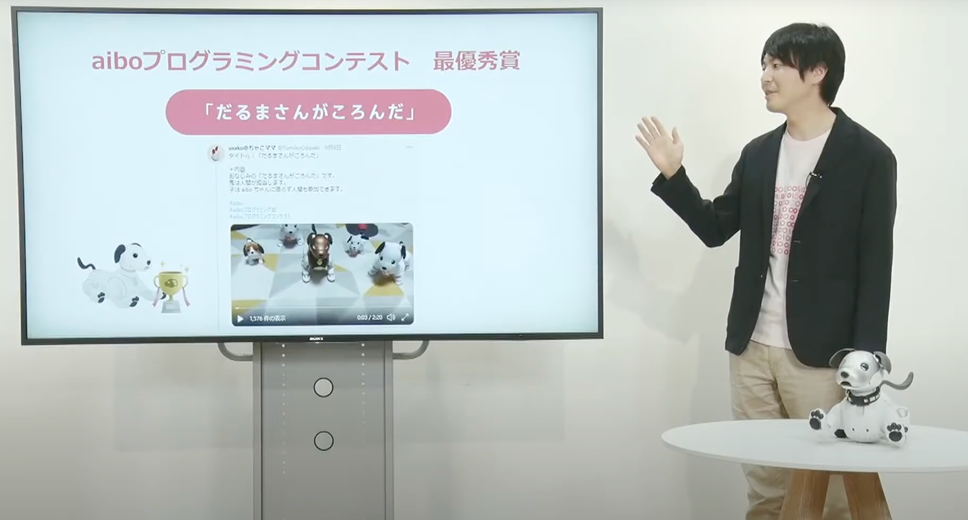 The Aibo Lounge segment focused on several new topics - the first being the creation of a large-scale 3D printed aibo that was fully posable. This would later be featured at future in-person events such as Aibo Fan Meetings and Aibo Shichi-Go-San.