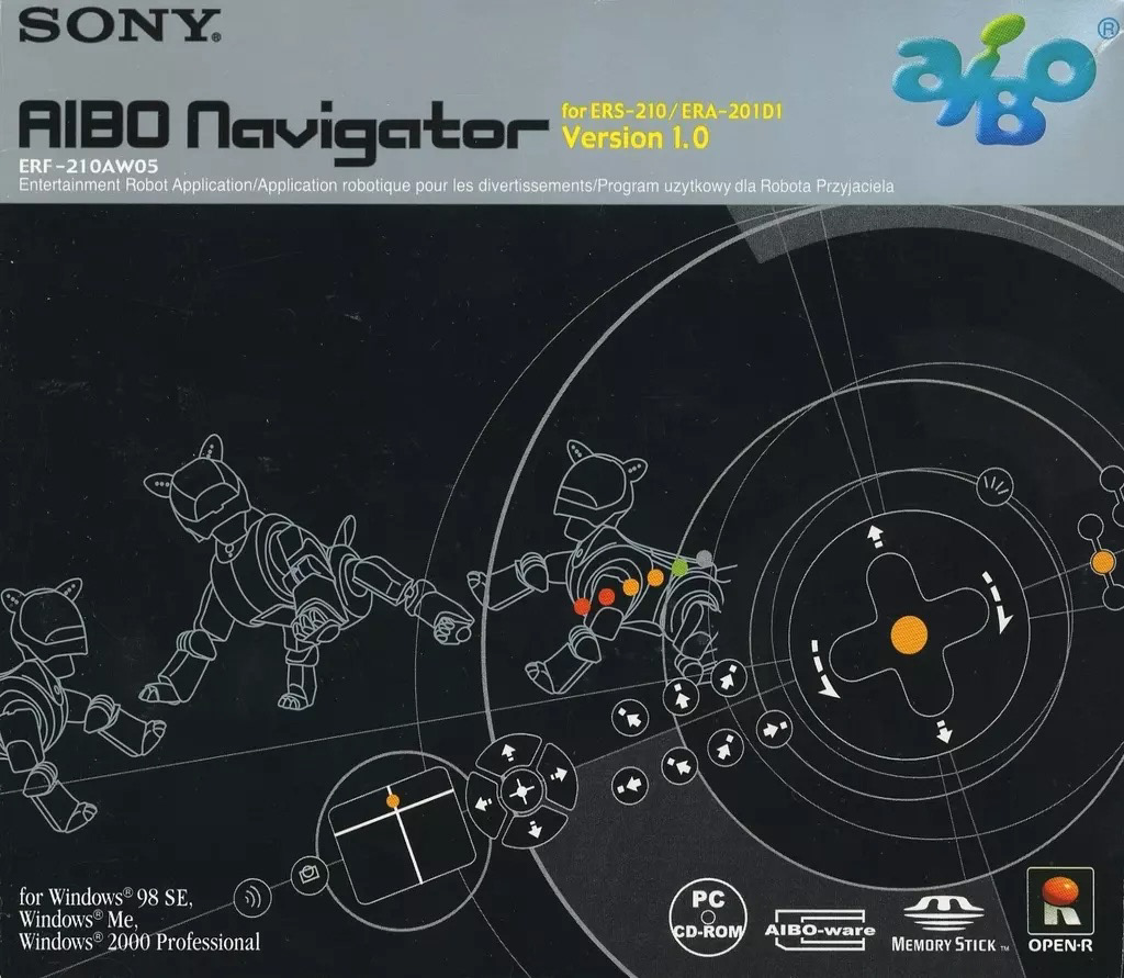 Aibo Navigator is a PC based LAN remote control software for the ERS-210 robots which allows users to remotely control the robot's actions via a computer. The software can live stream the camera's feed and the user can use either on screen buttons or a flight stick to make aibo walk around and do various pre-set animations.