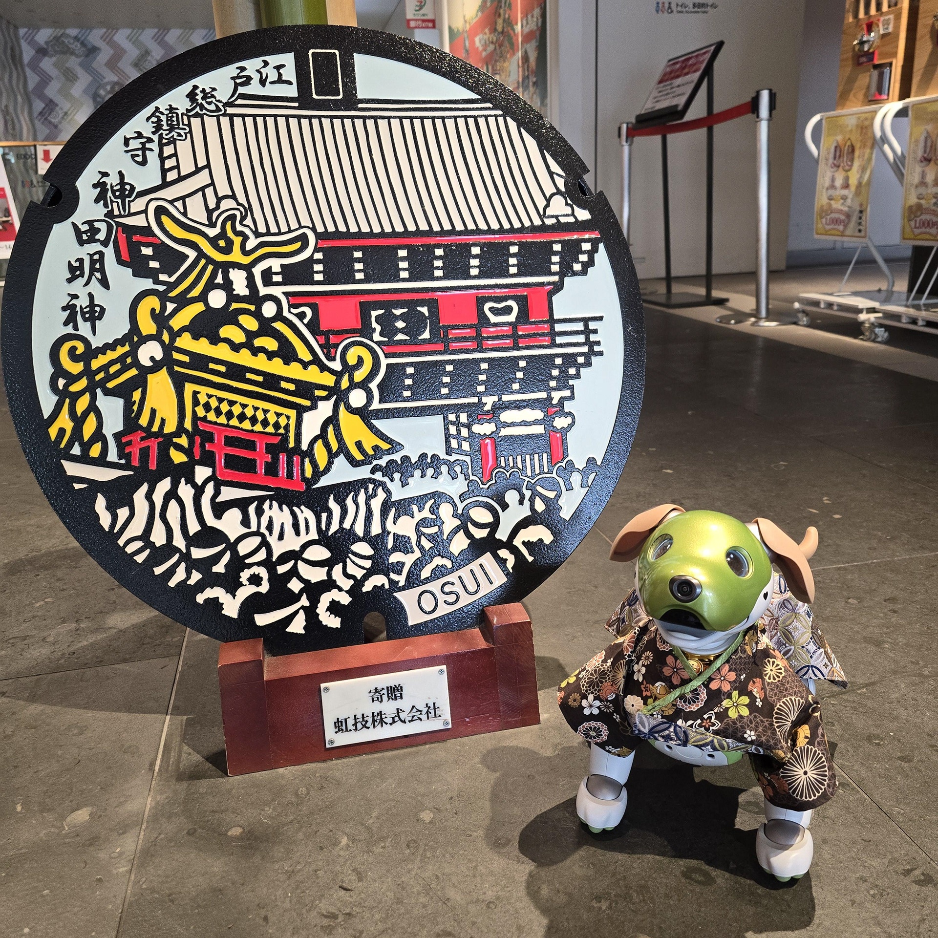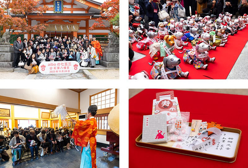 神社は、当選の有無に関わらず、すべてのaiboオーナーに開放されていました。スタッフがテーブル、マット、そして3Dプリントされた巨大なaibo像を用意し、一緒に写真撮影ができるようにしました。