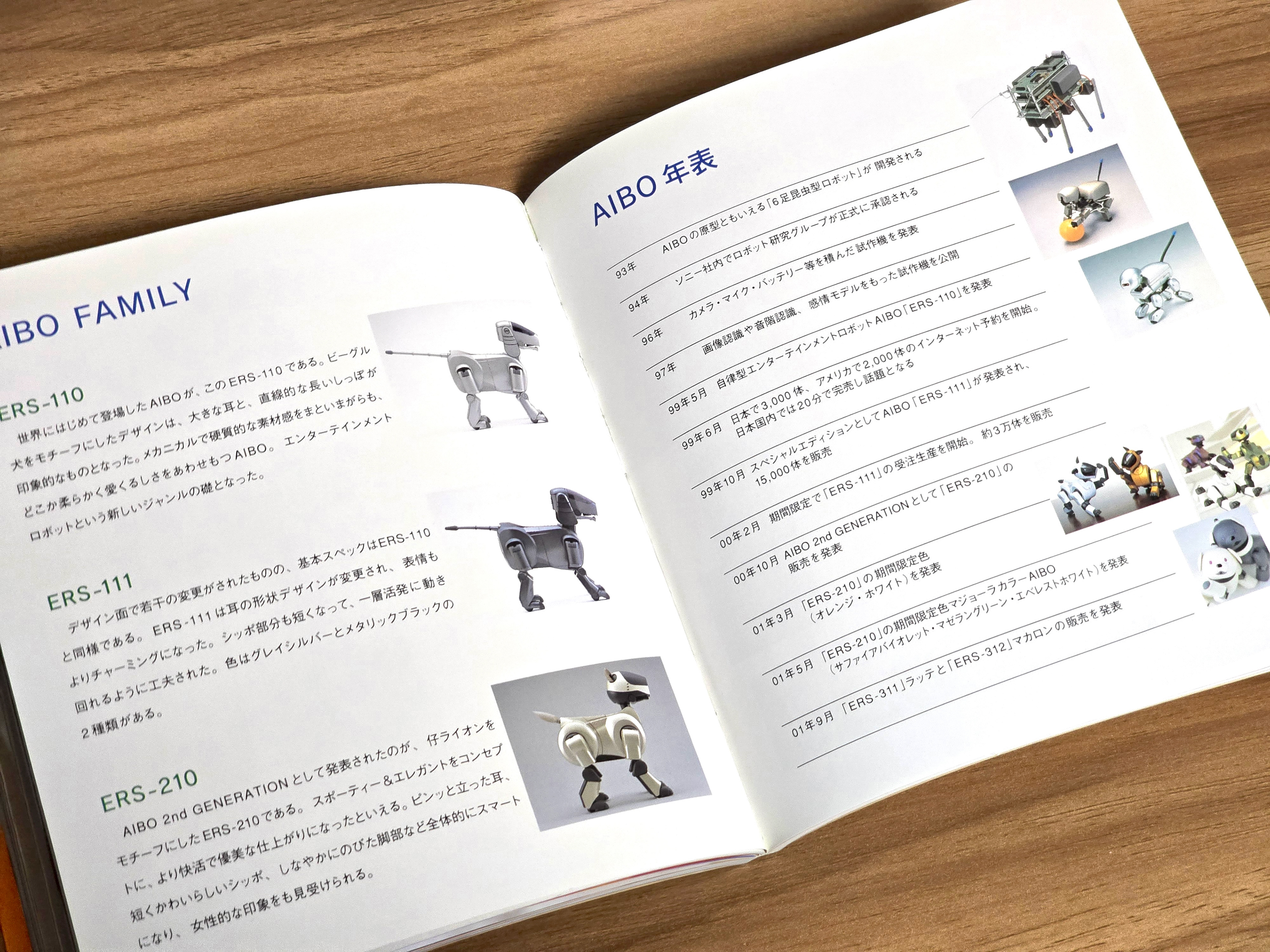AIBO TOWN誌が発行する、当時の最新ロボットラインナップであるaibo ERS-311とERS-312に関するコーヒーテーブルブックです。両モデルの充電中の写真に加え、aiboオーナーへのインタビュー、aiboの基本的な概要、そして当時の日本のコミュニティについて簡単に触れています。また、ERS-31xシリーズaiboで導入された新機能についても解説しています。