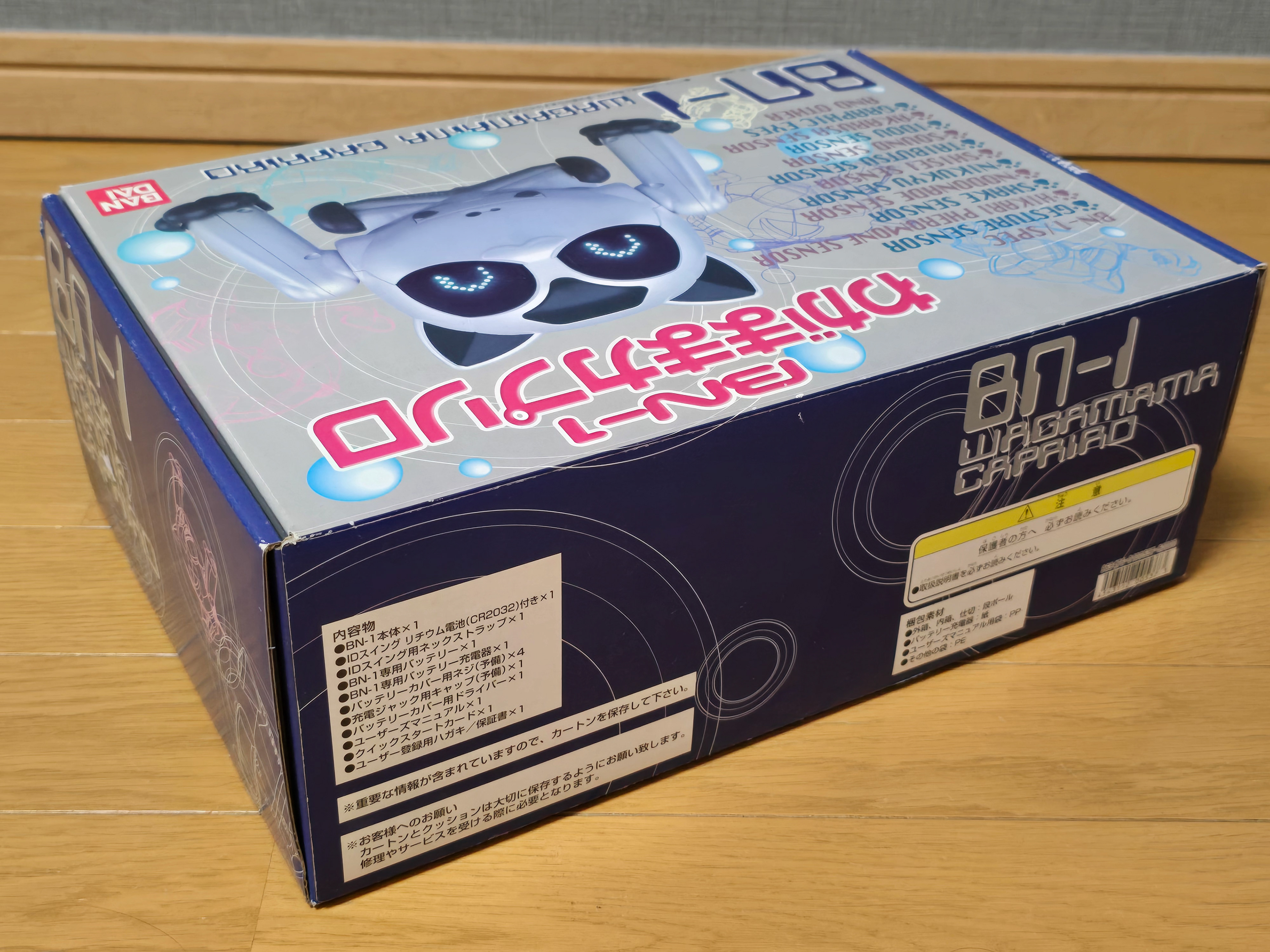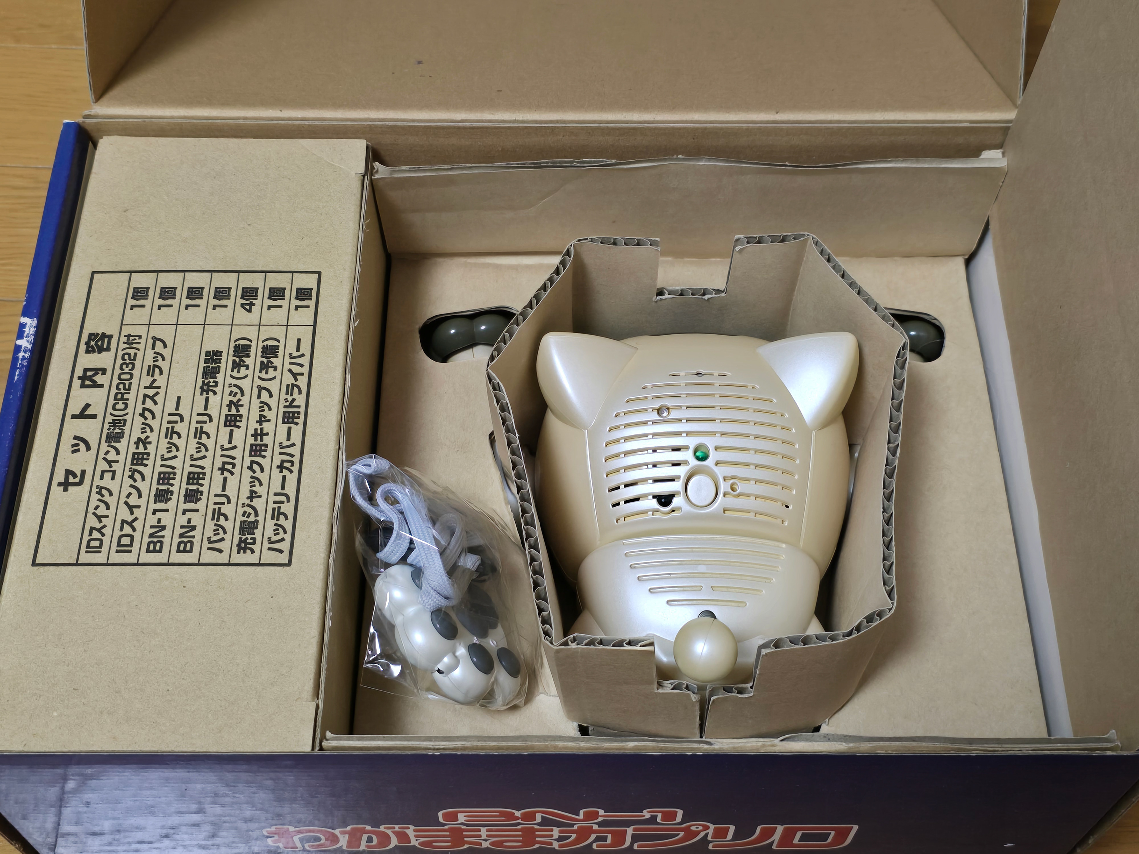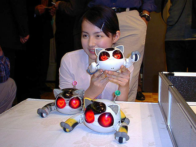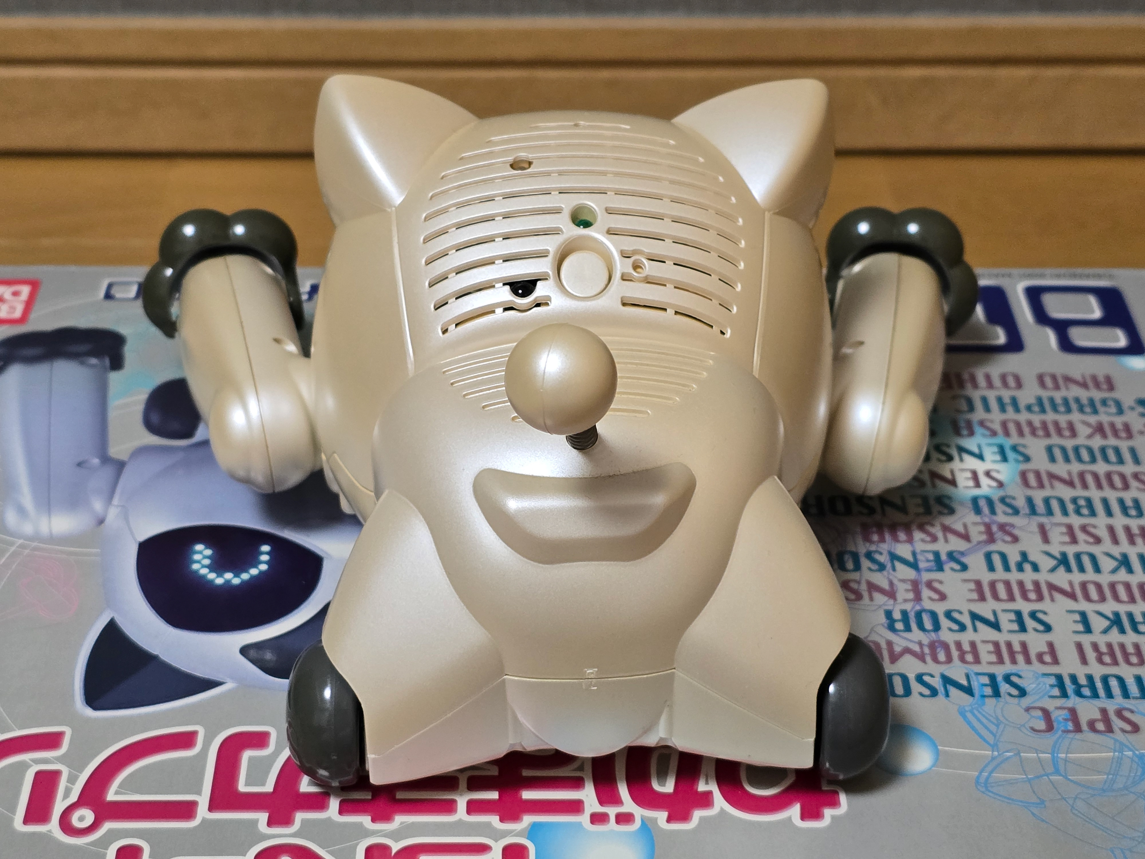 The BN-1 'Wagamama Capriro' is a companion/entertainment robot by Bandai released in 2001 to serve as an alternative to the Sony Aibo. It features a whole host of functionality and sensors - some being very unique to the robot such as being able to wirelessly programme it over IR. The cat moves around using wheels on its front and back legs, letting it move with considerable speed compared to other robots at the time. It was also able to roll over thanks to the swivel joint in its rear half.
