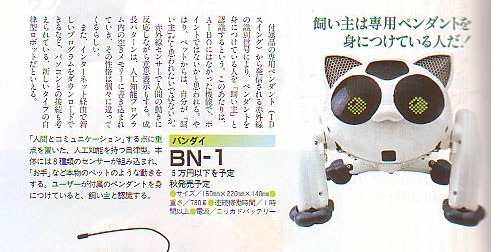In a magazine feature a prototype BN-1 was shown that had a different shell design to the retail version. The eyes and body are rounder with mesh style ears.