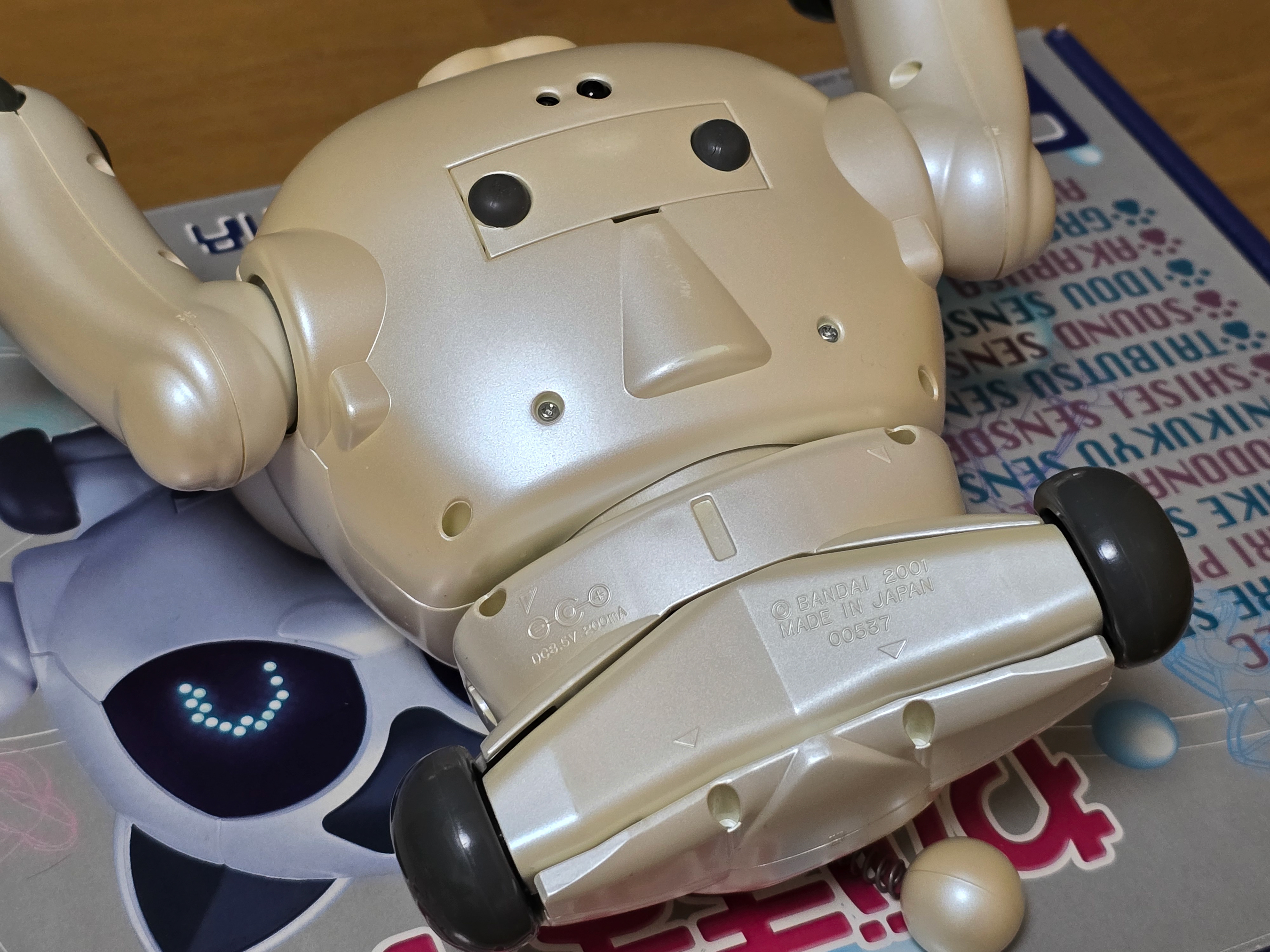 Multiple painted prototypes were shown at various Japanese robot shows near the time of release. These variants are either robot or cat fur pattern inspired. Their head sensor window is also differently shaped + they have transparent tail balls.
