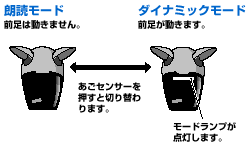 このソフトウェアには2つのナレーションモードがあります。ダイナミックモードでは、aiboが手足を動かしながら物語を語り、リーディングモードでは、ダイナミックモードではaiboが動かずに物語を読み上げます。
