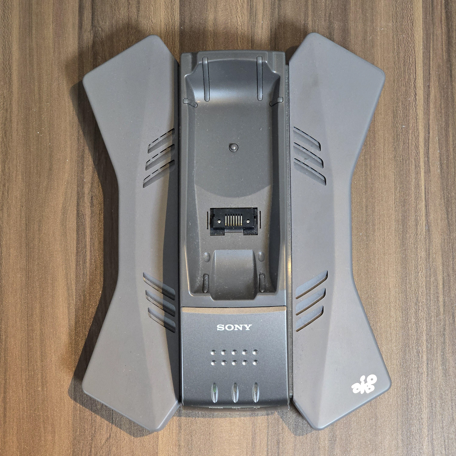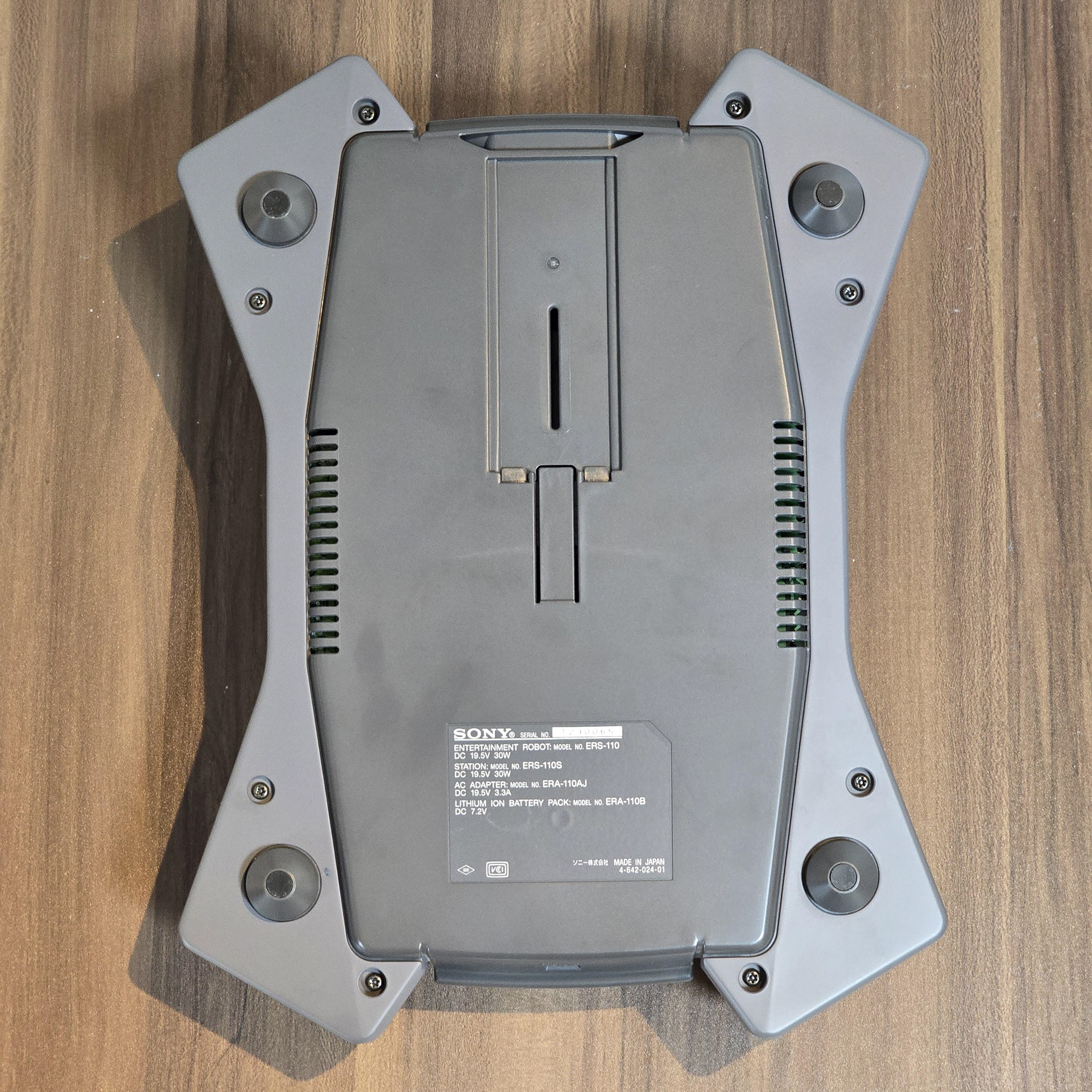 This is the charging dock which came included with every ERS-110, ERS-111 and ERS-1100 aibo robot. The dock itself is quite large in size and heavy due to its build quality. Not only does it have a space for aibo to sit on the dock to charge the battery inserted in the aibo, but it also has a secondary battery slot at the front which can be used to charge the included second battery.
