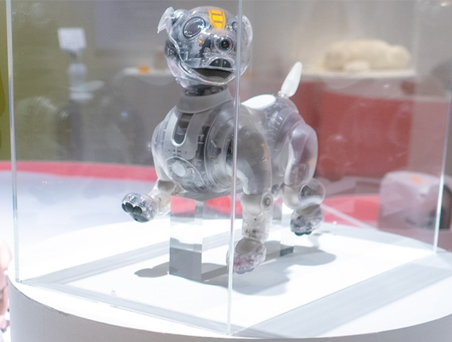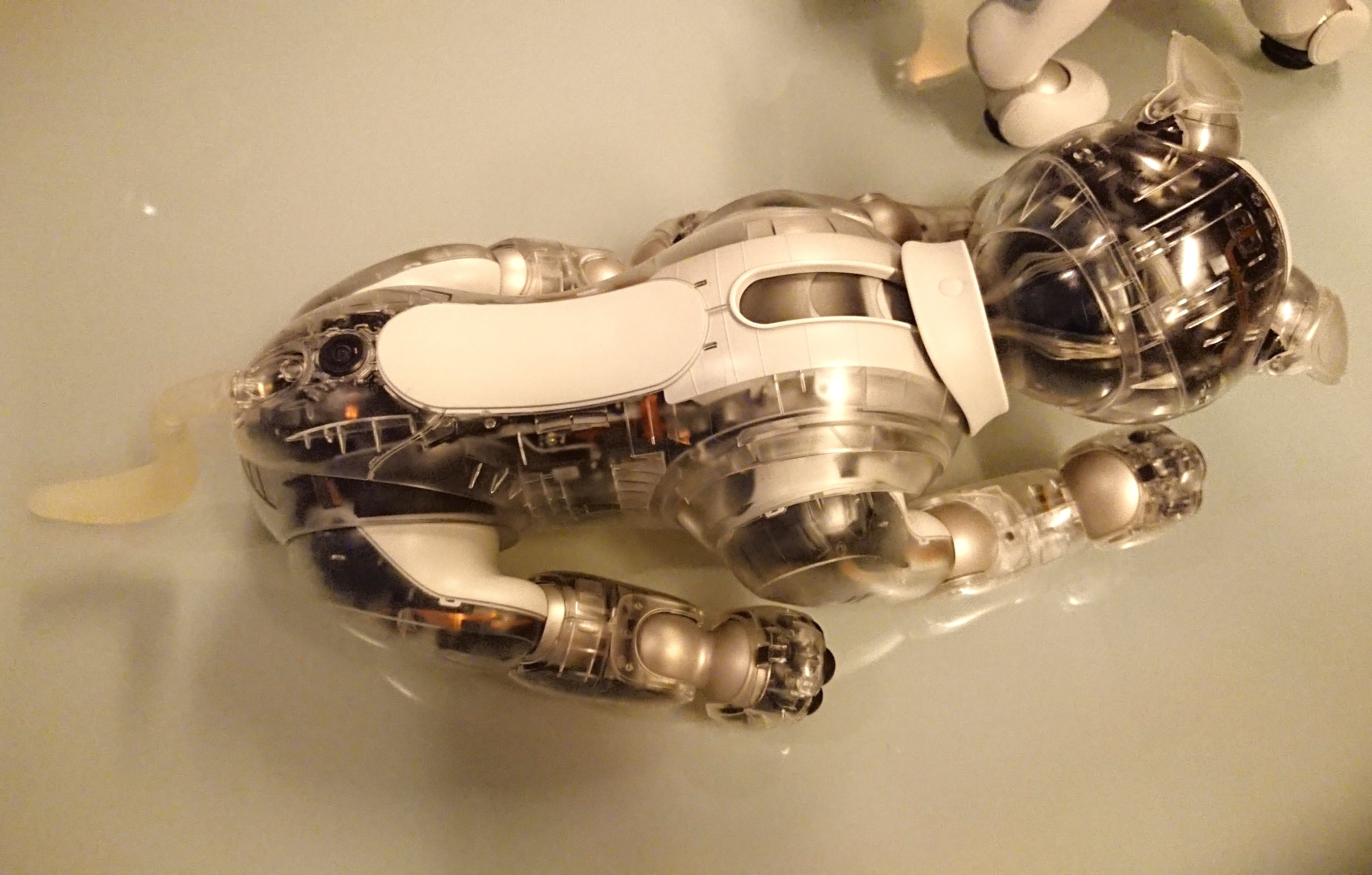 当初は静止状態で展示されていましたが、その後のaiboファンミーティングで動作確認が行われました。