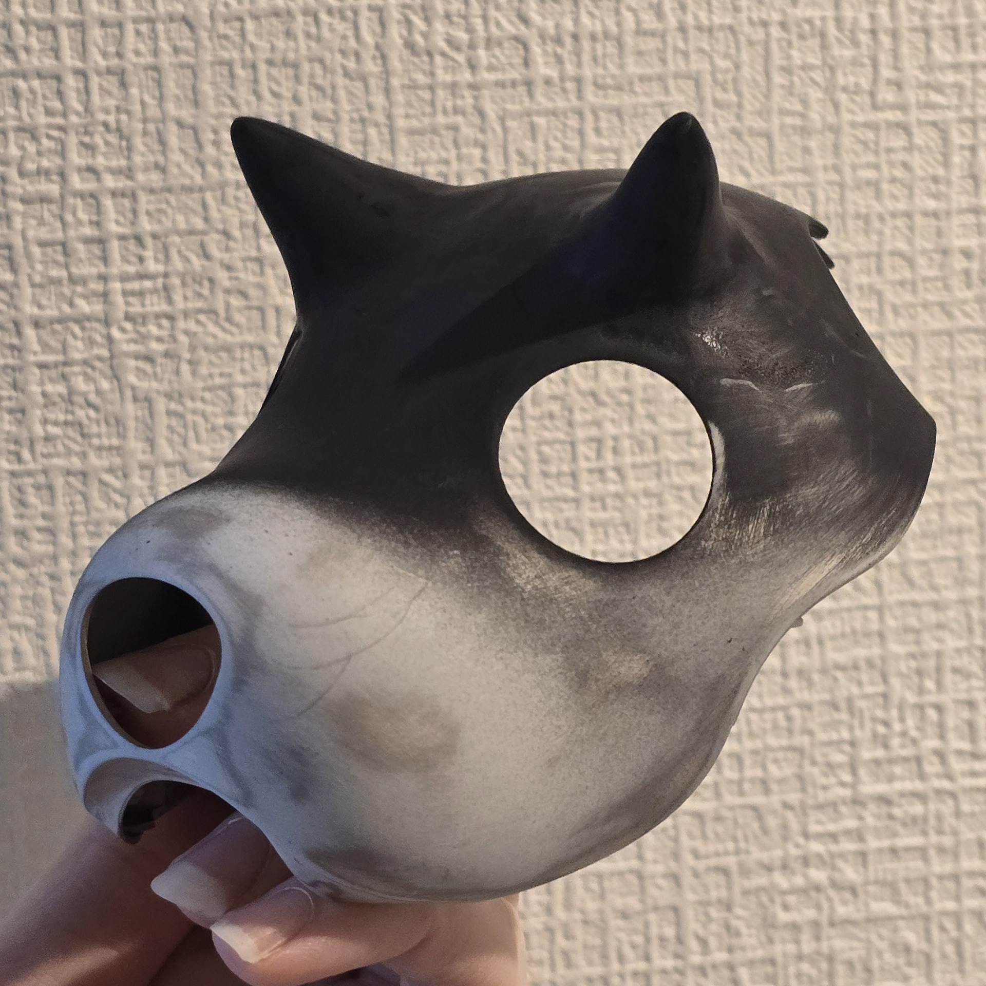 The horns were hand sculpted first in clay, left to dry. I then made a mold and then made two horns out of Daiso UV resin. They came out kinda rough, so I used sand paper to smooth them out before attaching them to the faceplate with more UV resin. I then continued sanding and filling gaps with UV resin until I got a more seemless looking connection between the two surfaces.