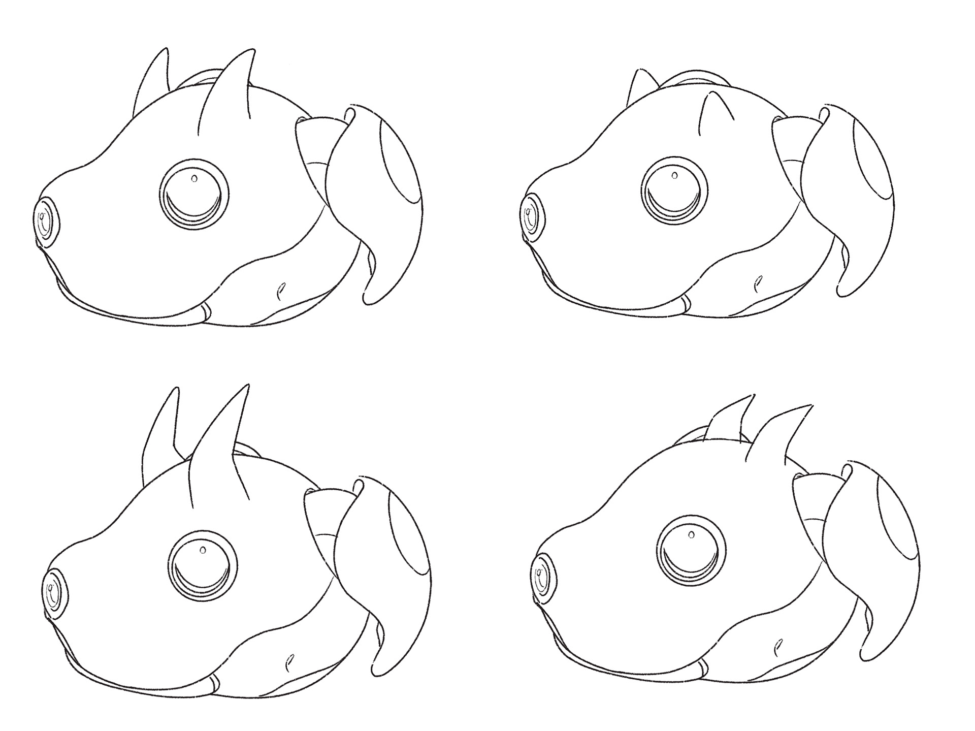 I came up with 2 pages full of possible designs for the horns and their placement. I wanted to retain some of the cuteness while keeping them a practical size (I didnt want them to interfere with the aibo's operation).