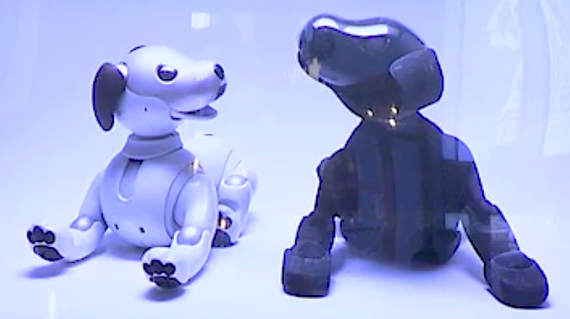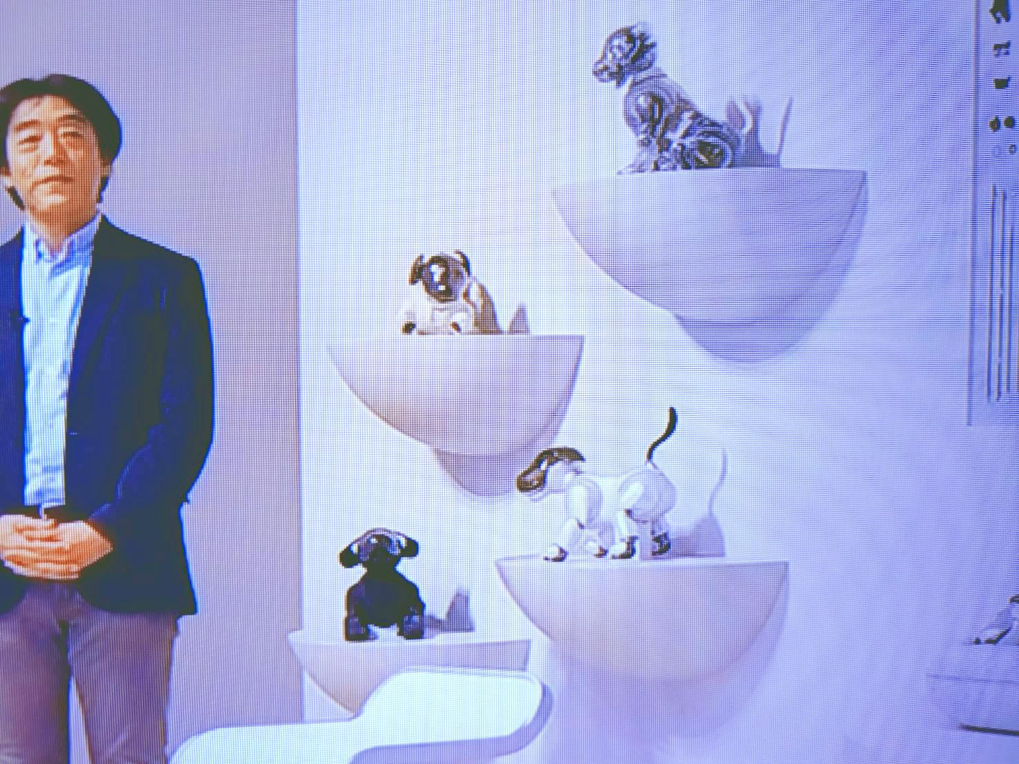 Prototype briefly shown in the background of a Japanese TV documentary in 2017 about aibo's development. Images of the black ERS-1000 prototype was shown during the Aibo Fan Meeting Vol.3 event. It appears to have soft textured finish on its entire exterior, possibly flocking adhered onto the plastic shells and fabric over some parts (it’s hard to tell as the images online are low quality). The tail is long and stiff, sitting at an unnatural position, even when turned downwards. The overall shape bares a strong resemblance to the final ERS-1000 design, but with some aspects of the ERS-7 still present, such as the large black visor and how the aibo stands.