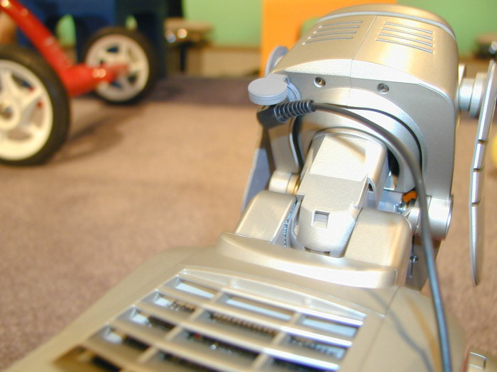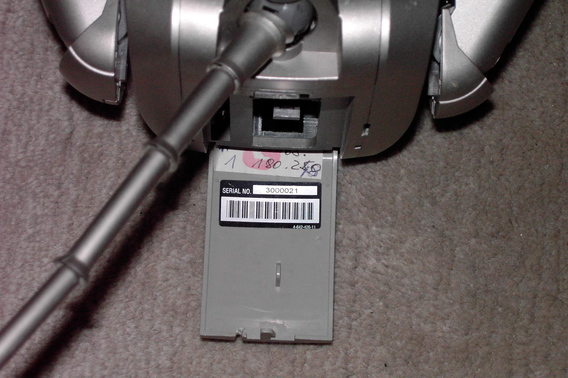 The ERS-1100 is a ERS-110 variant created for use in the Robocup tournaments where more flexibility was needed for programming purposes. It has an active PC Card slot in the battery bay where a LAN card slots into and an antenna leads from. The antenna module pushes into the aibo's left ear slot. There are also an active USB port on the back under a pane;.