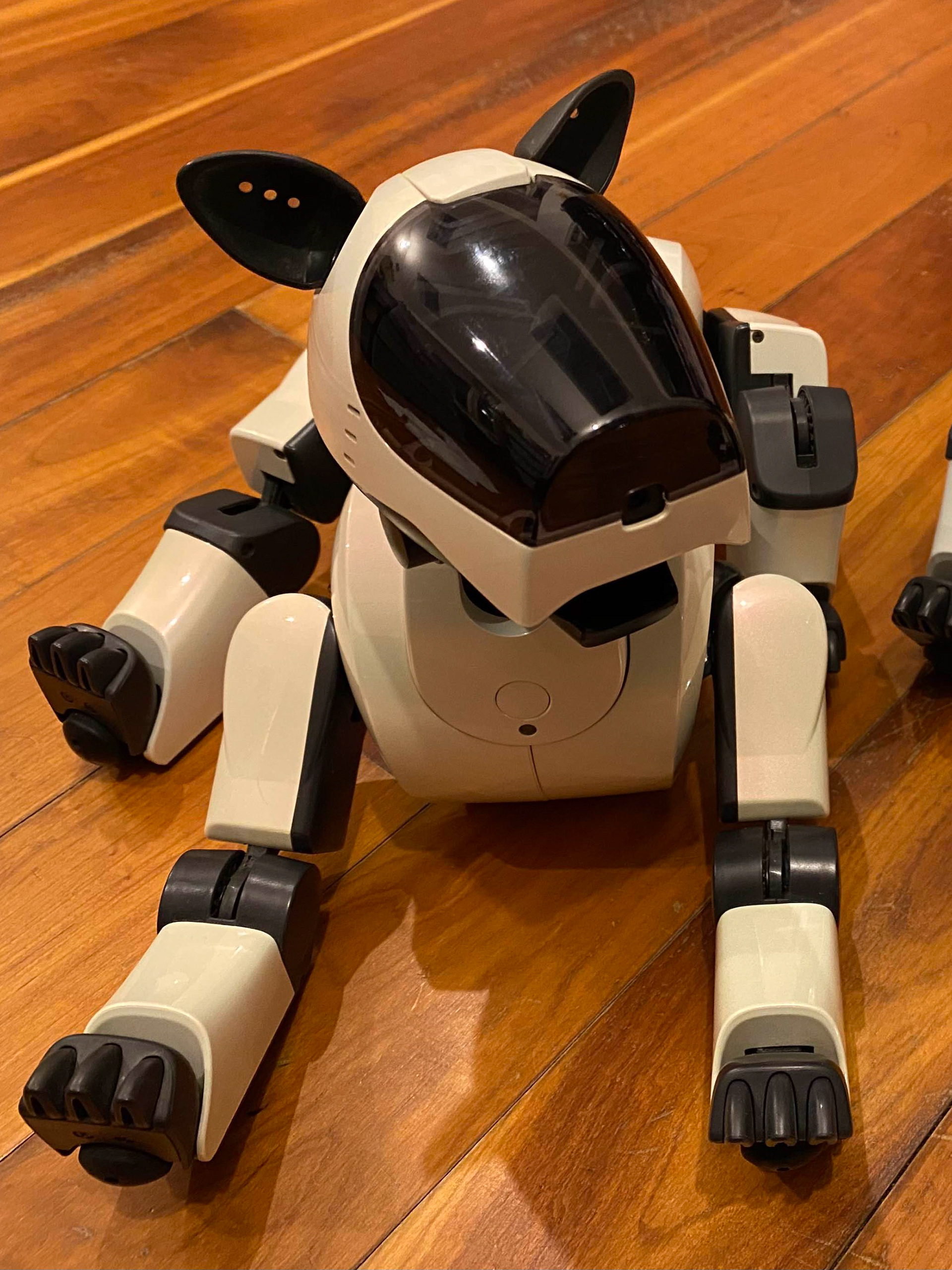 ノワール(左)は、プレプロダクションプロトタイプのERS-210です。彼はエベレストホワイトのシェルのテスト用として作られた可能性があり、210の発売後にソニーが持っていた余剰パーツで組み立てられたかもしれません。彼の特徴として、2本の脚に緑/青の配線があり、目のフロスティングが少なく、エベレストホワイトの通常の黒いものではなく金色のバットナブが付いています。彼はスティックなしで起動し、小売ソフトウェアを起動しますが、Aibo Life/Hello Aiboを起動する際に誤ったパーソナリティに起動します(例:ナイスガイのスティックを挿入しても、冒険的なパーソナリティに起動する、たとえロックされていても)。