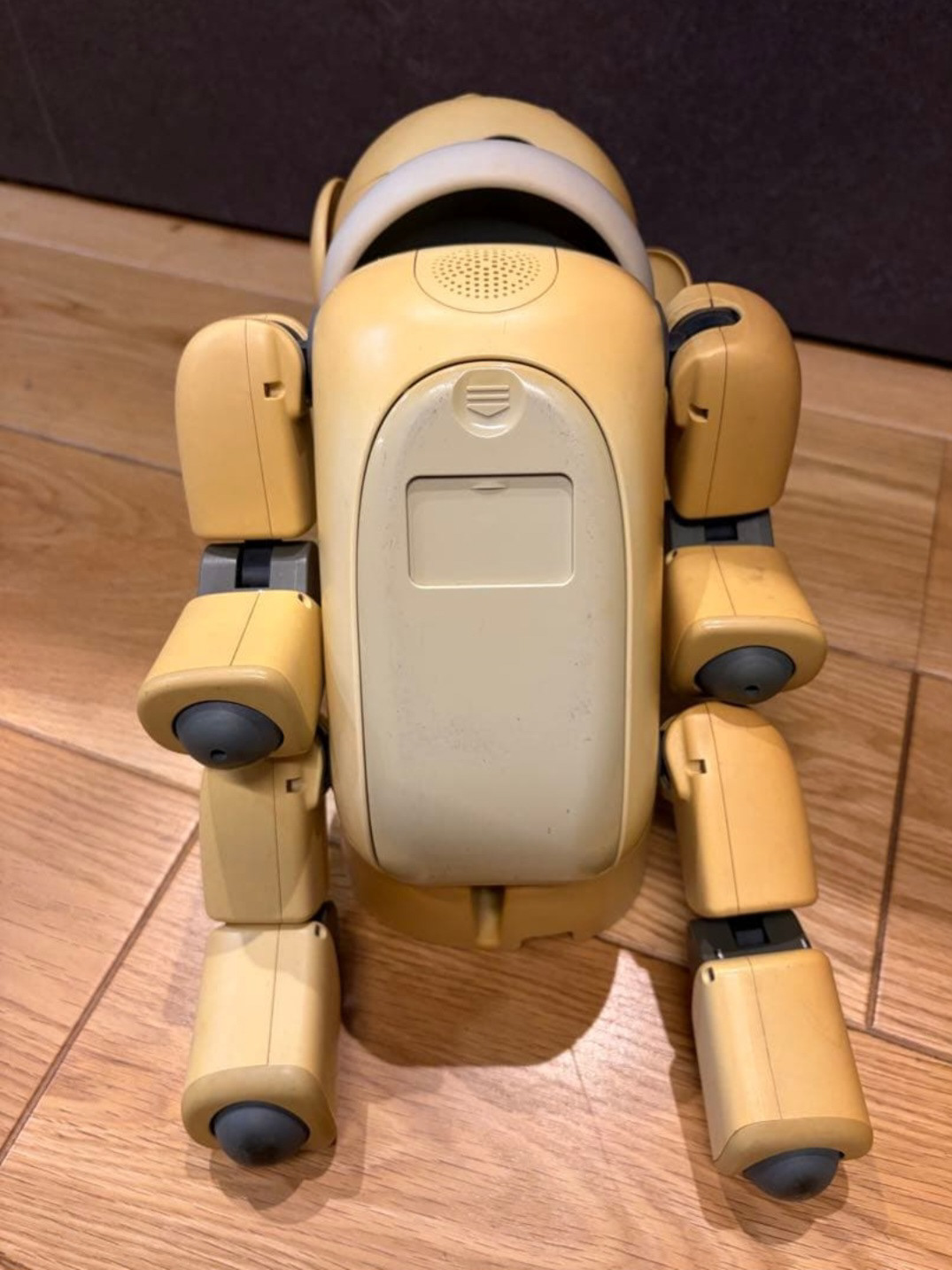 このプロトタイプERS-311は、2026年初頭に、より明らかな物理的差異を持つプロトタイプERS-312とともにメルカリに掲載されました。aibo本体のデザインはほぼ完成しているように見えますが、唯一の大きな違いはバッテリーベイのドアのデザインです。プロトタイプのシェルがひどく黄ばんでいるため、色の変更があったかどうかはわかりません。バッテリーには「サンプル」のソニーのステッカーが貼られていますが、現時点ではバッテリーがサンプルなのか、それともaibo本体も対象としているのか判断するのは困難です。
