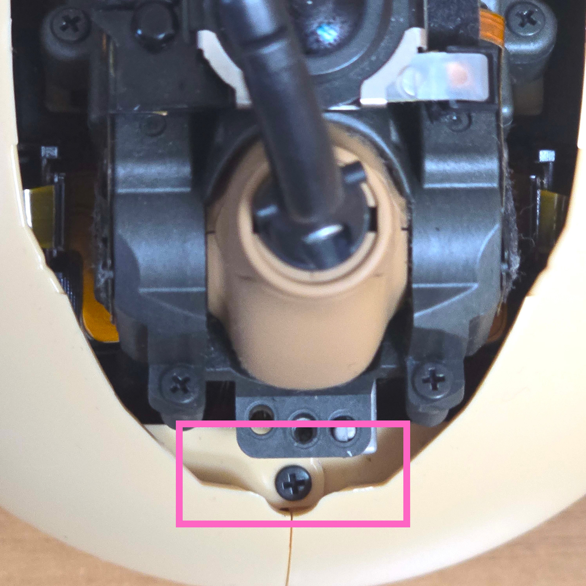 このタブが原因なのです。正しく装着されていないと、タブの下にあるプラスチックと擦れ、最終的にはプラスチックの表面が磨耗し、aiboが歩くときにキーキーという音が出てしまいます。