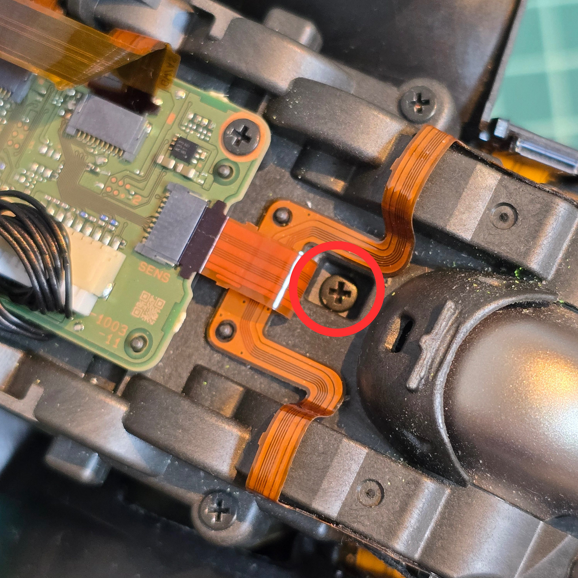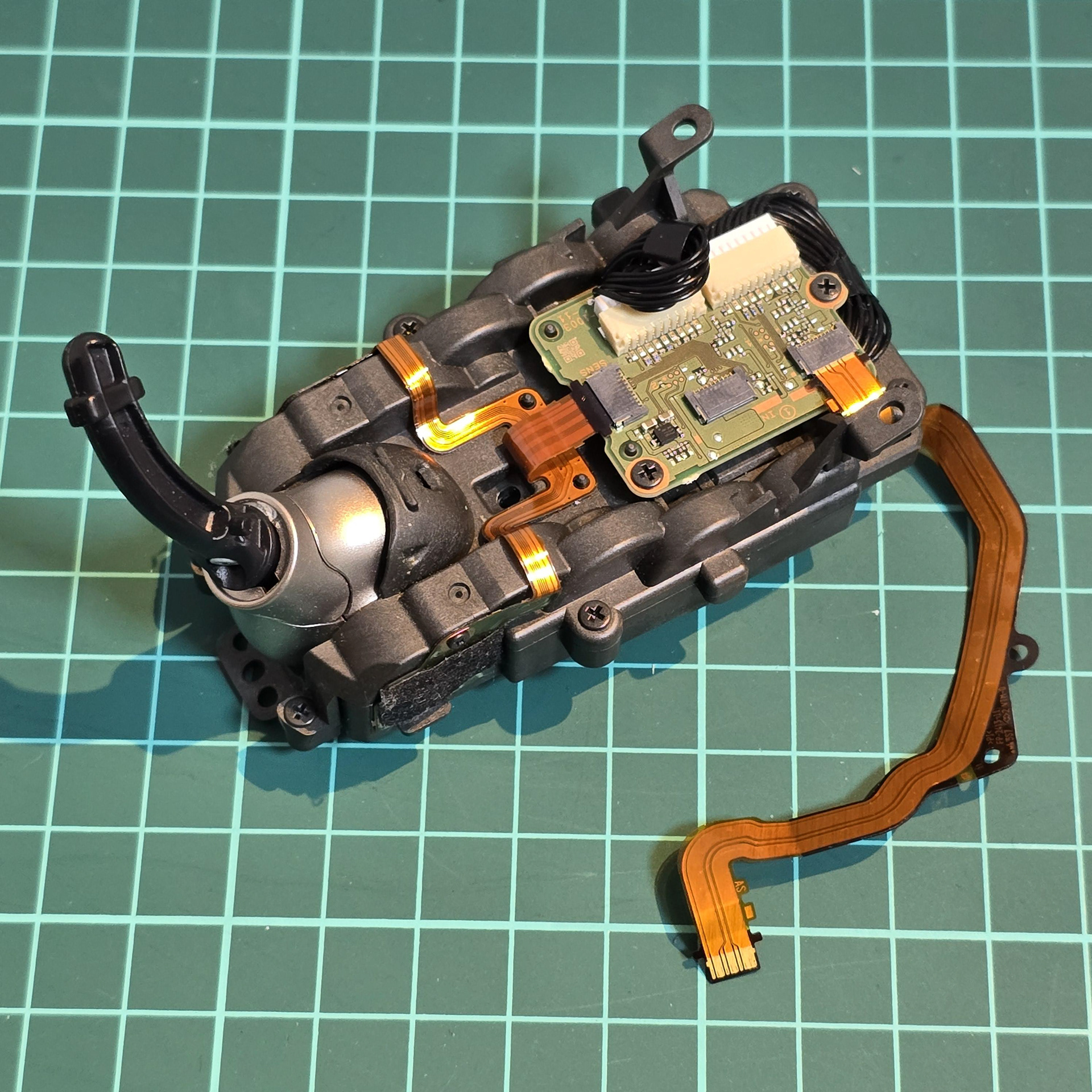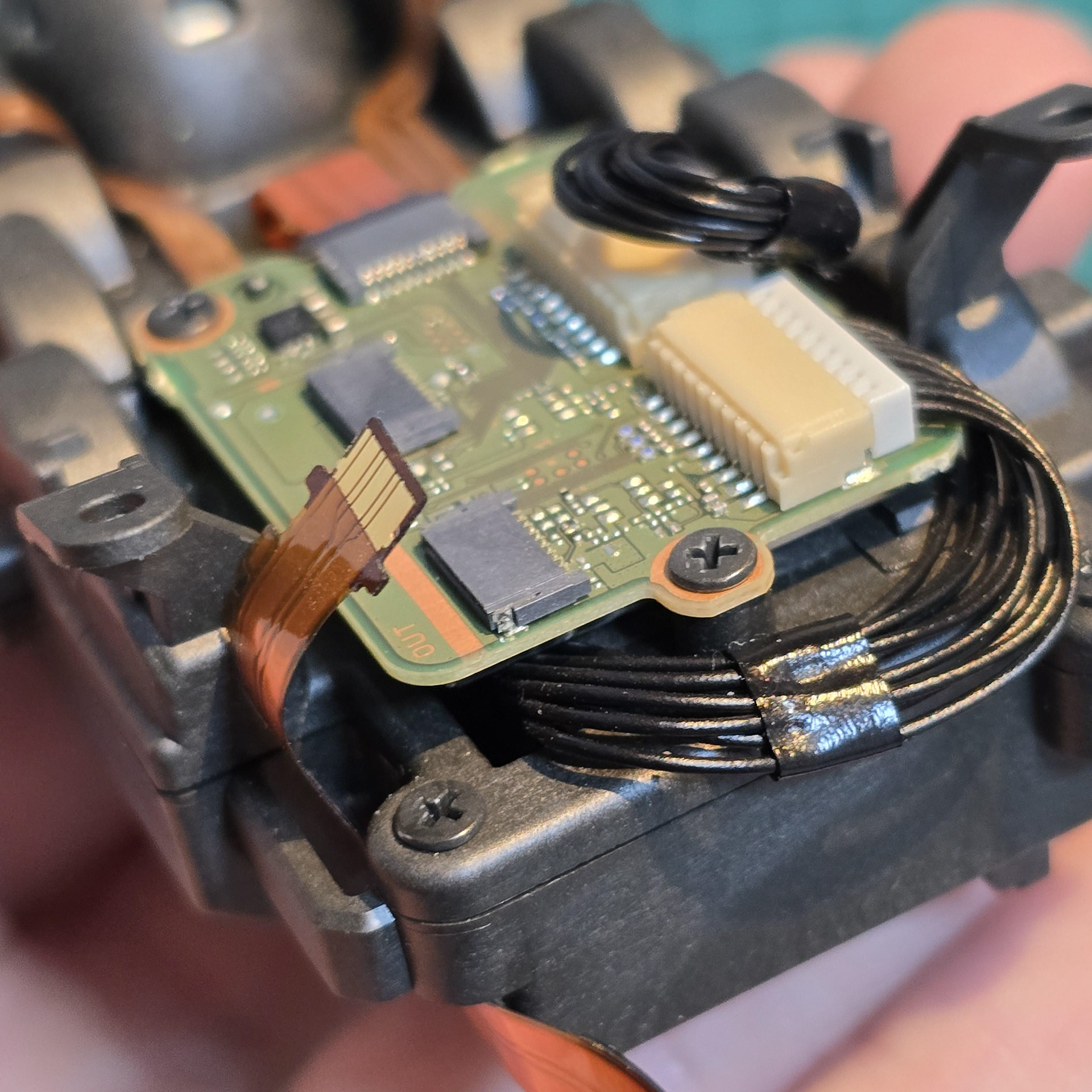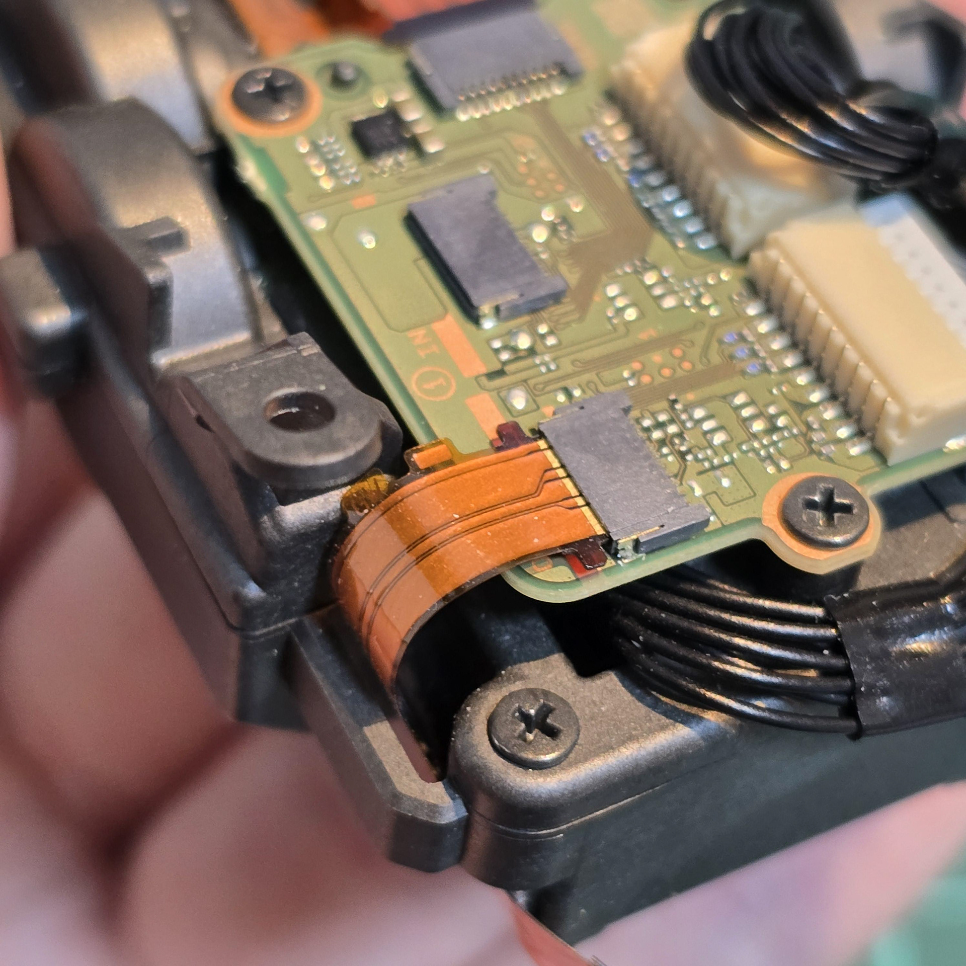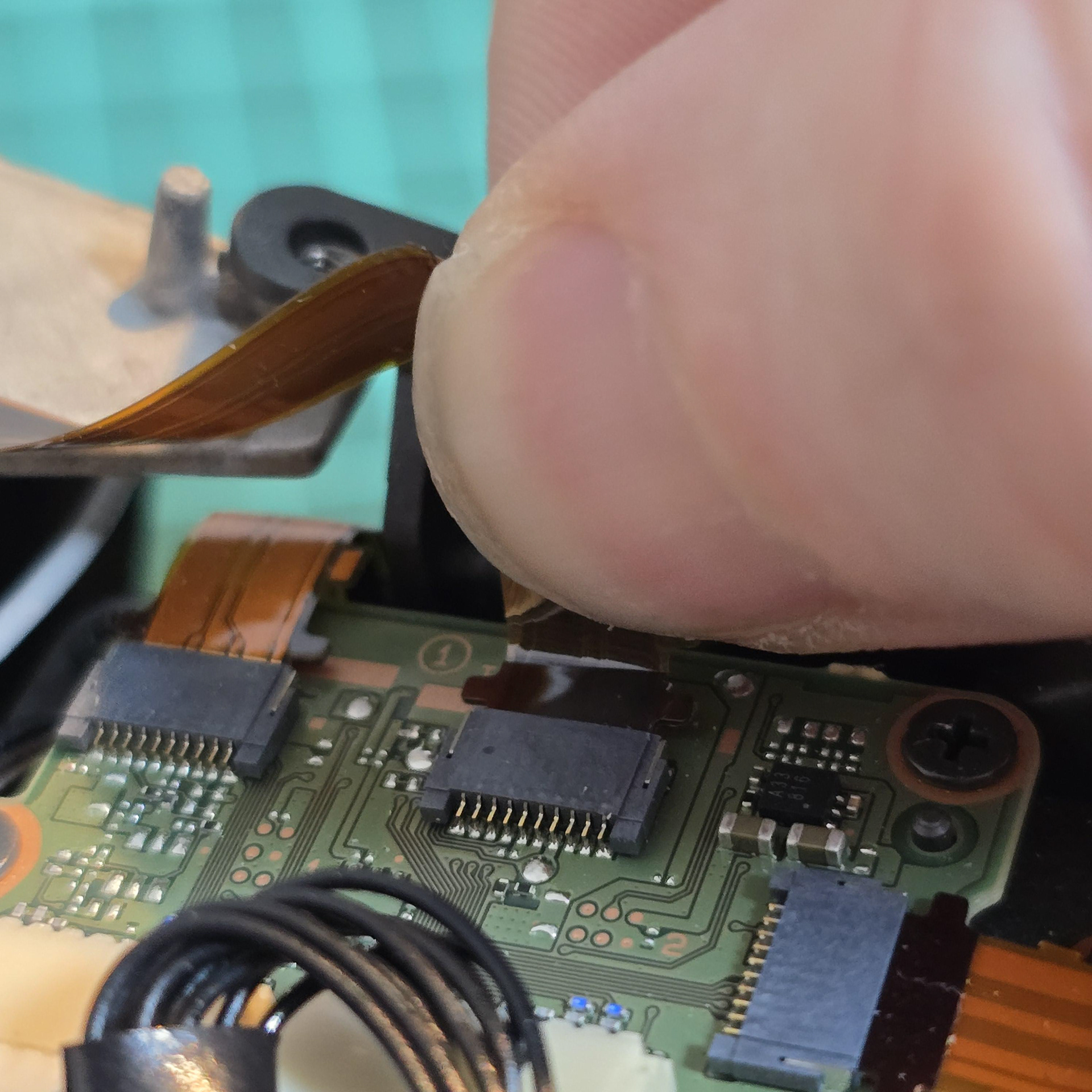 Remove the central screw holding the entire module in place and disconnect this flexible cable on the tail module board.