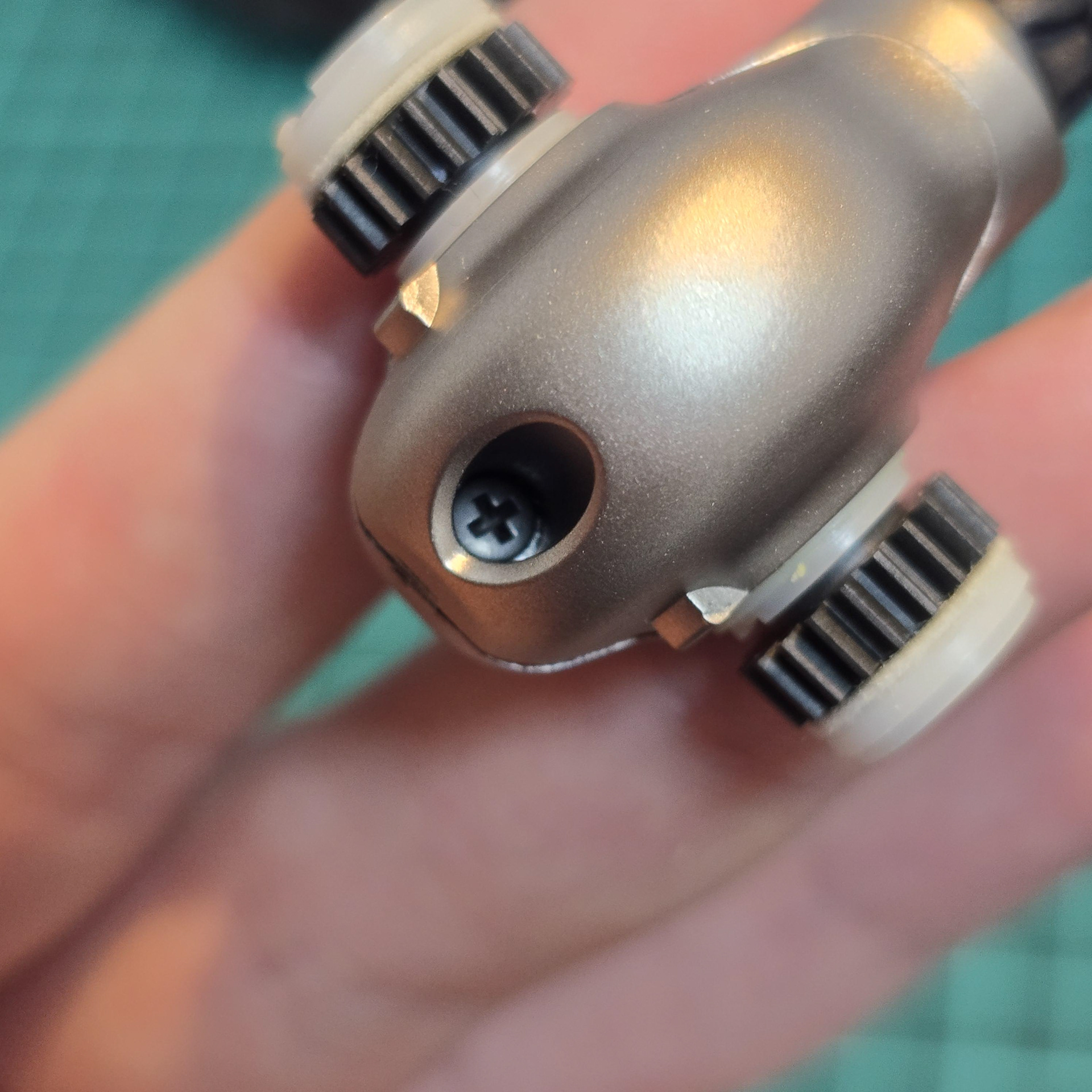 テールハブは、1本のネジを外し、黒いテールナブを外すと開けられます。これで開けられます。上部と下部のパーツは持ち上げて外し、側面のパーツはテールロッドから引き上げて外します。このパーツを分解する際は、側面のパーツに印を付けて写真を撮っておくと、位置合わせの手間を省くことができ、同じ手順で組み立て直す際に役立ちます。