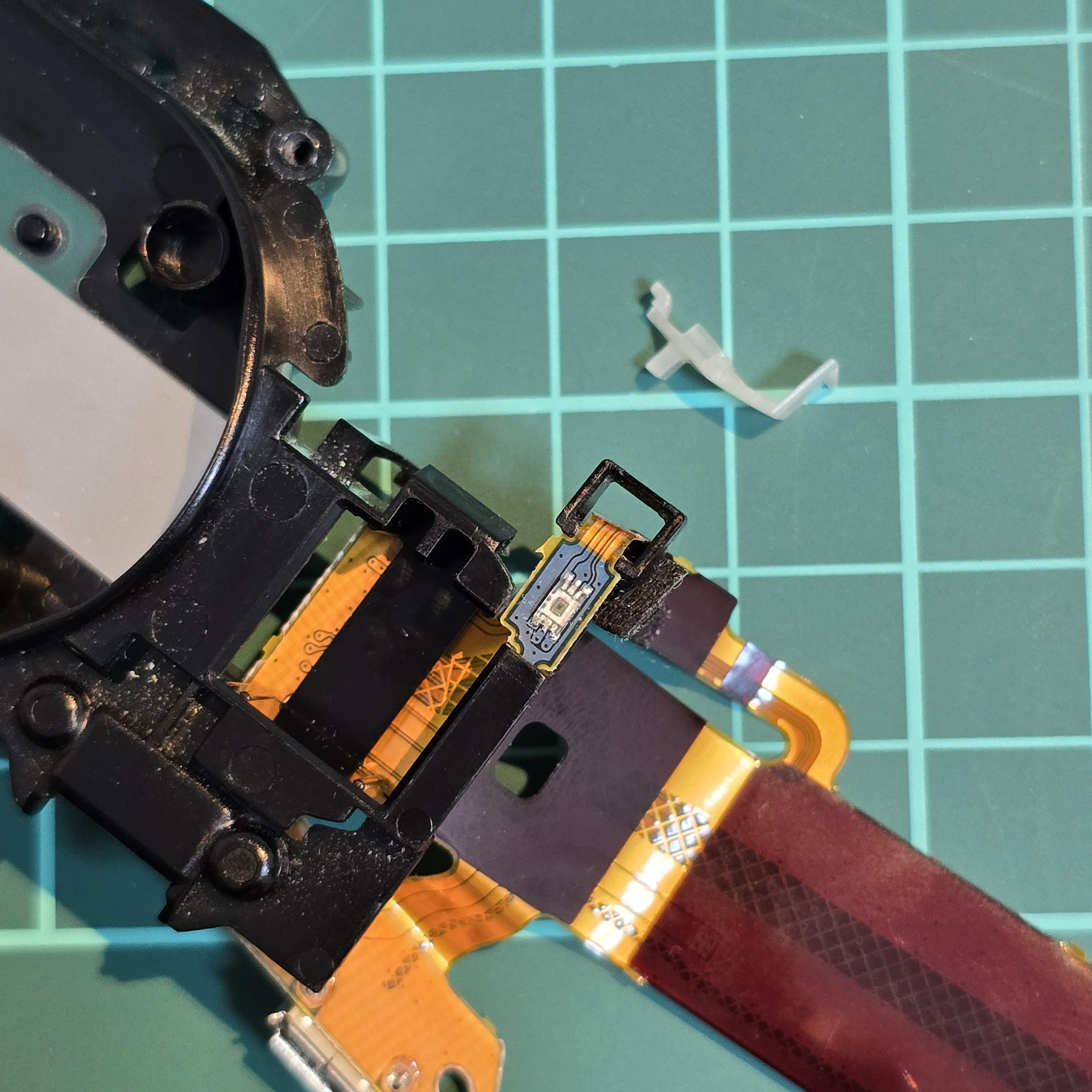 Once the ambient sensor is free, unhook the main flexible cable from near the camera connector on the cable. This will free it from the black plastic mount.