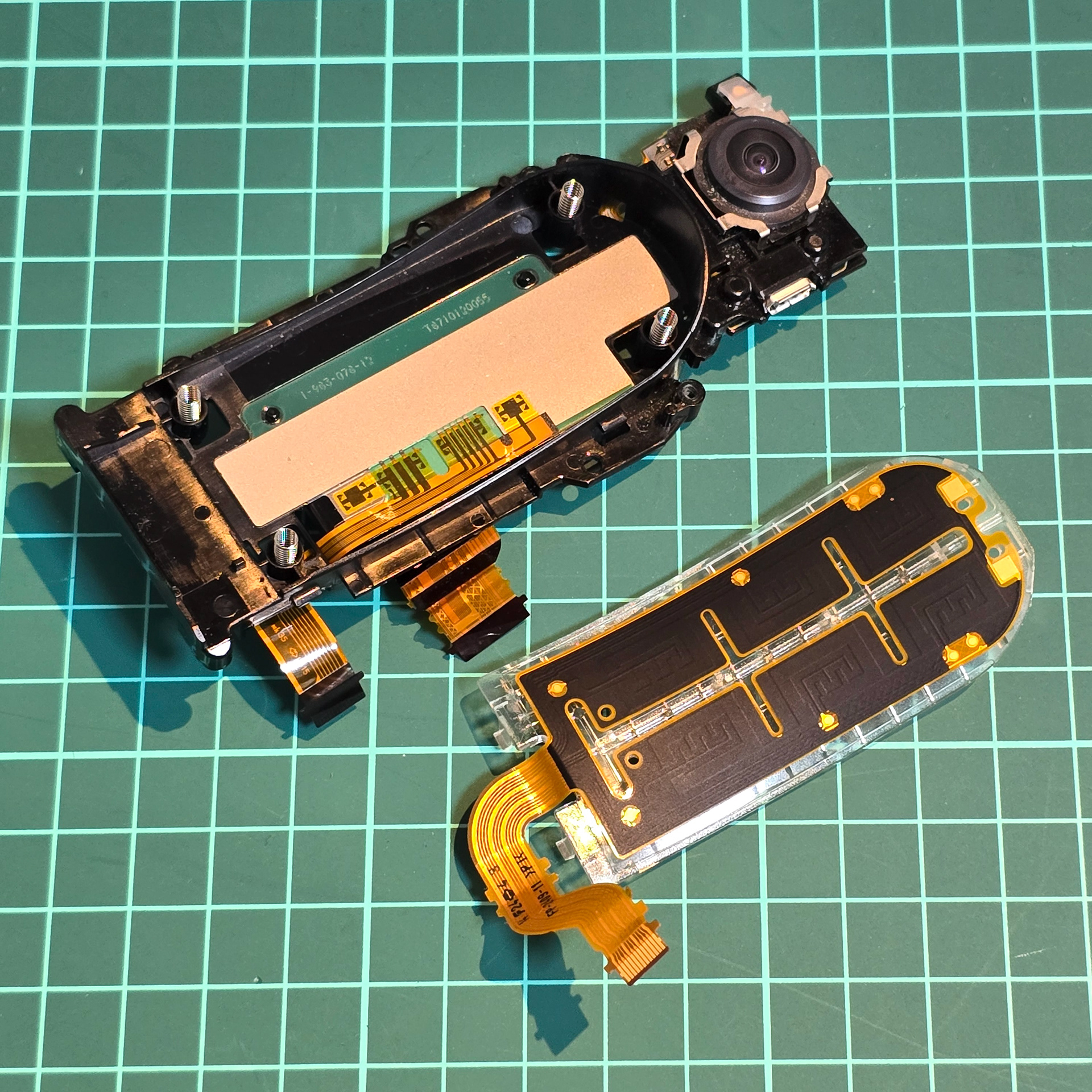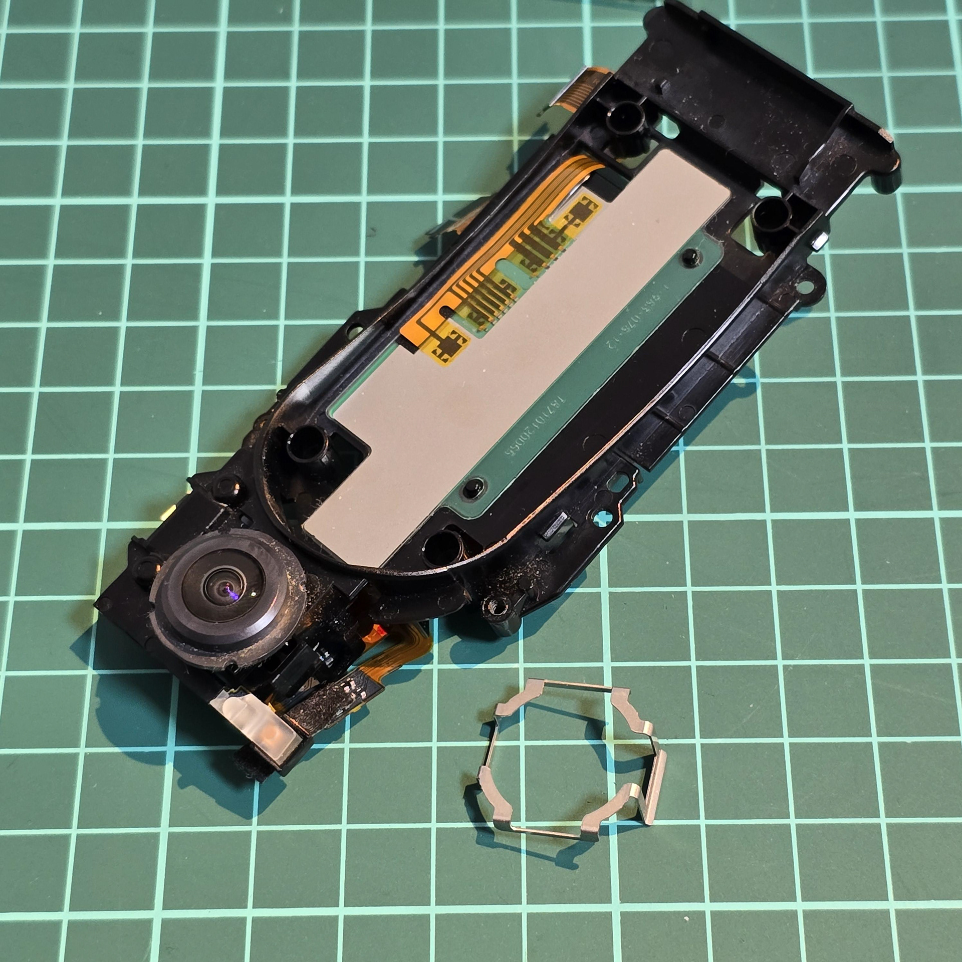 This is what the back sensor looks like from underneath (we can see due to it being mounted on clear plastic). I think the thing left on the black plastic is a temperature sensor?