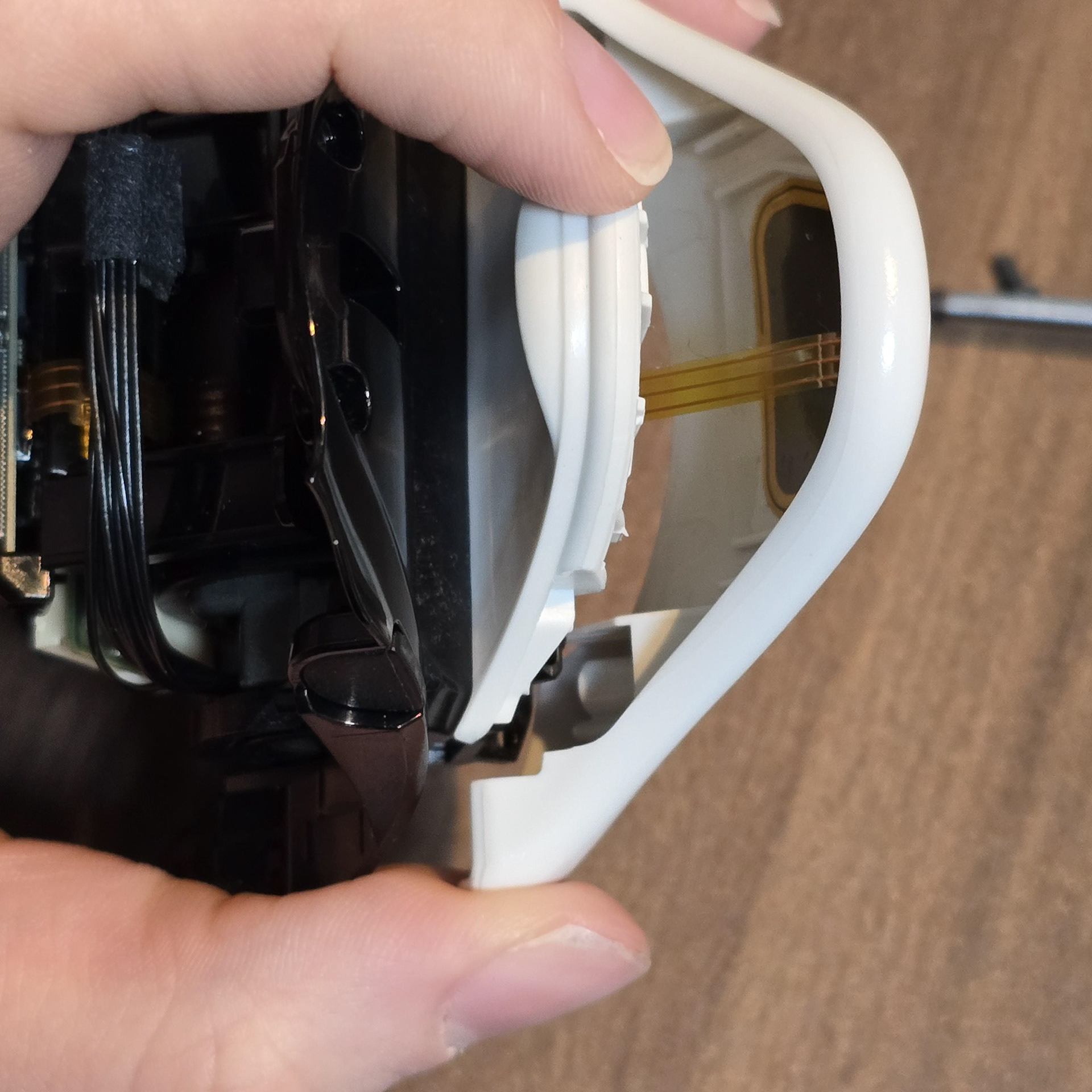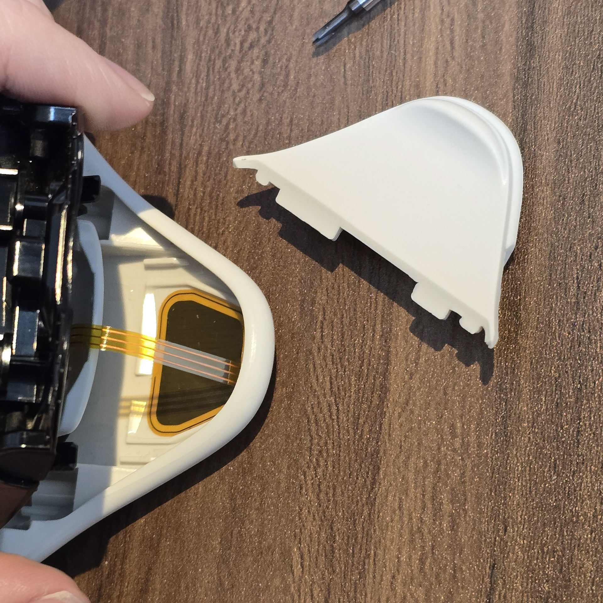 顎センサーを取り外すには、ゆっくりと慎重に剥がしてください。破らないようにご注意ください。取り外したら、顎のプラスチック部分を塗装できます。