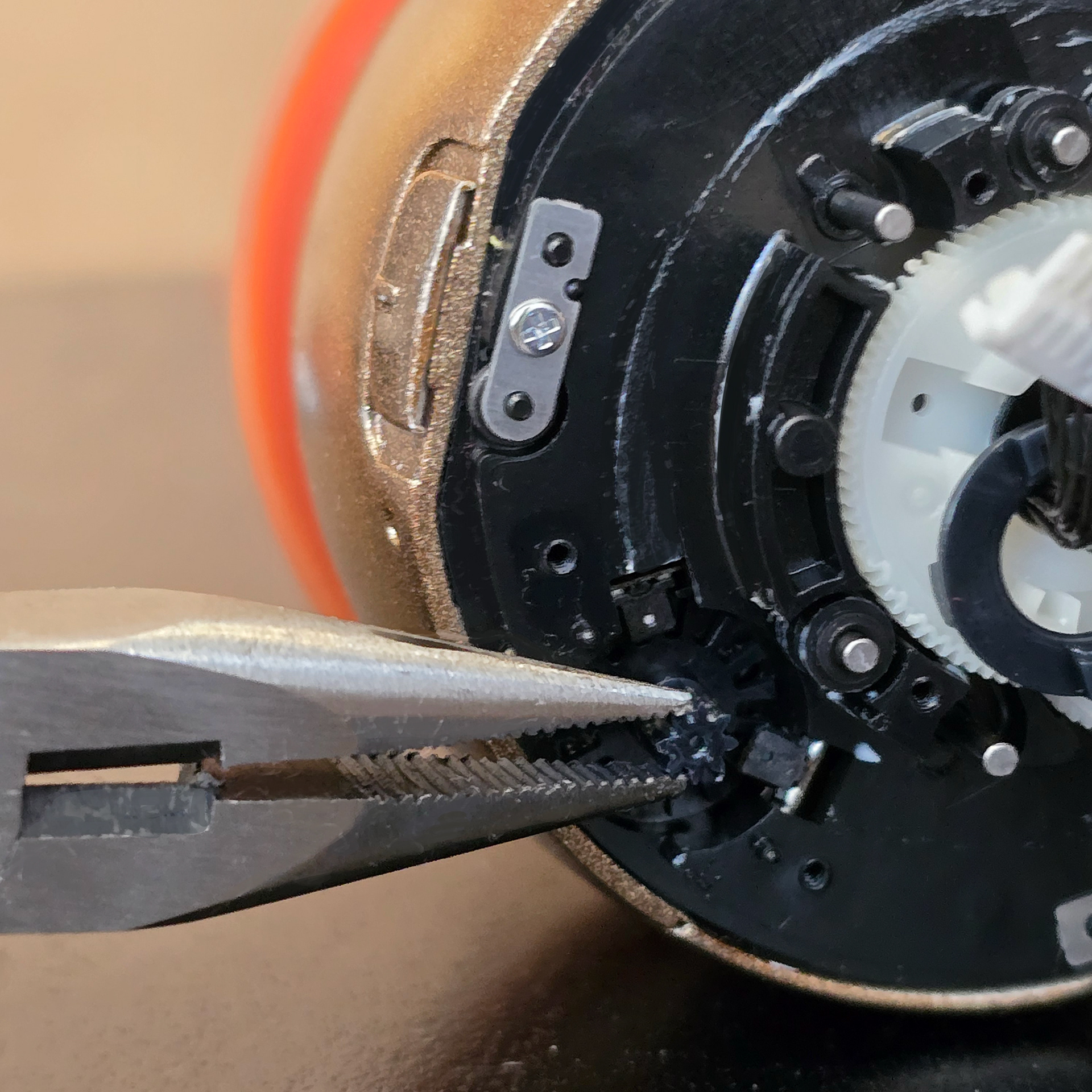 There may still be sound/resistance once the gear is repaired, but it should be fixed enough for the Rolly to operate.