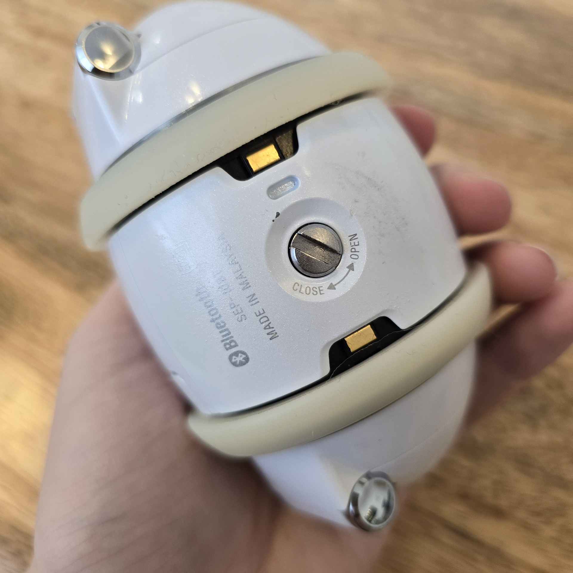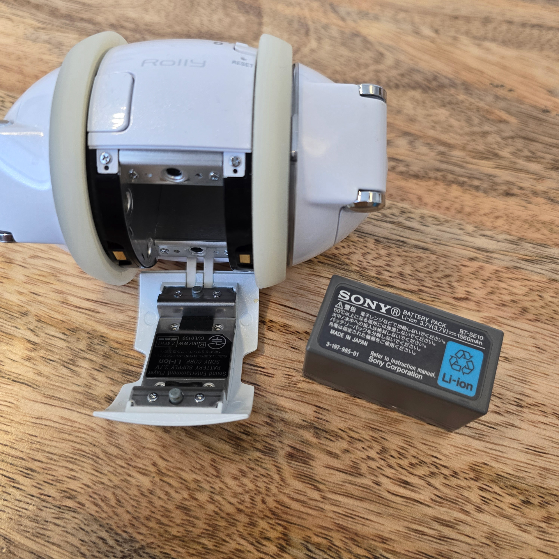 現在、ほとんどのソニー製Rollyプレーヤーは、Rollyホイールを駆動するピニオンギア(両側)の亀裂が原因で、音楽に合わせて安定して踊ることができなくなりました。亀裂によって小さなピニオンギアが広がり、ギアの駆動が停止し、カチカチという独特の音が発生します。完璧ではありませんが、この問題を解決する方法があり、(うまくいけば)Rollyを再び踊らせることができるようになります。